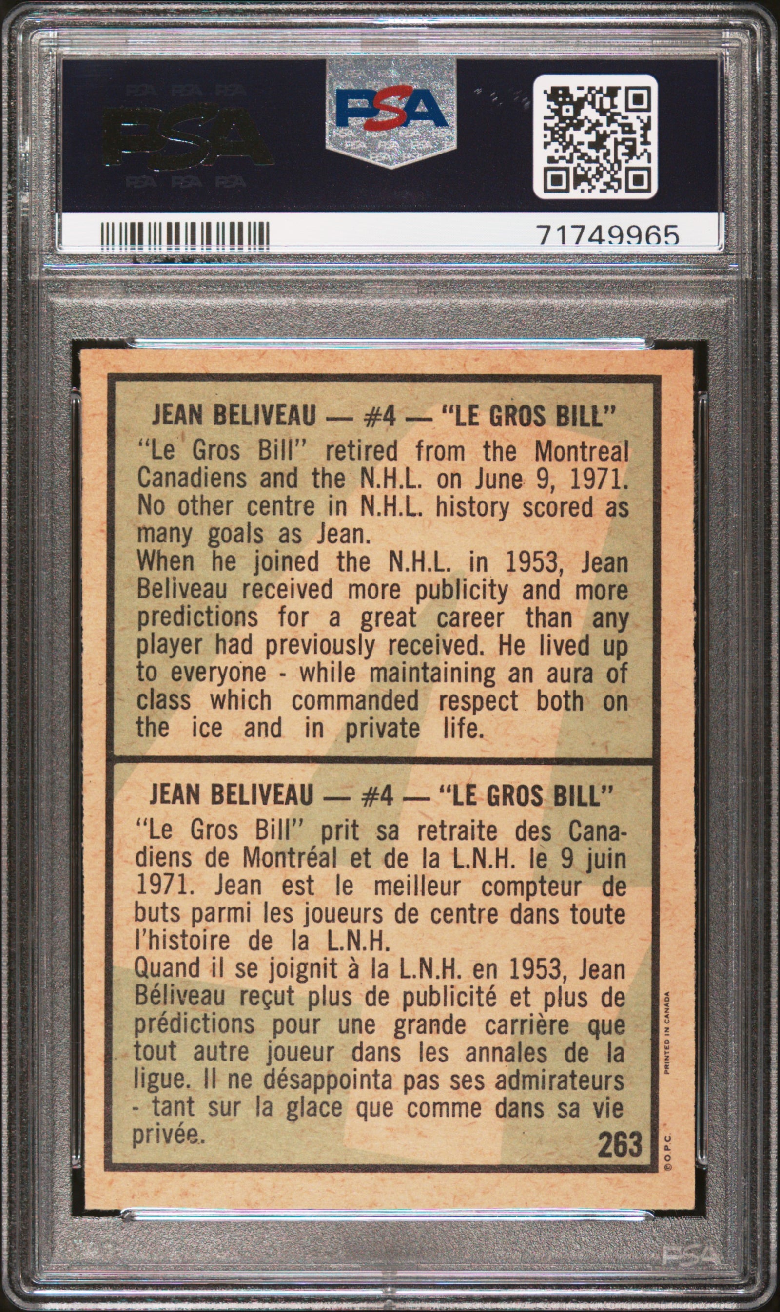 1971 O-Pee-Chee Jean Beliveau #263 Retirement Special PSA 8