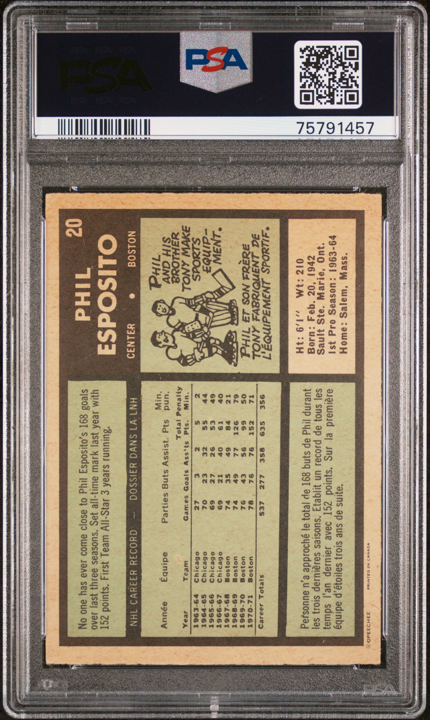 1971 O-Pee-Chee Phil Esposito #20 PSA 3