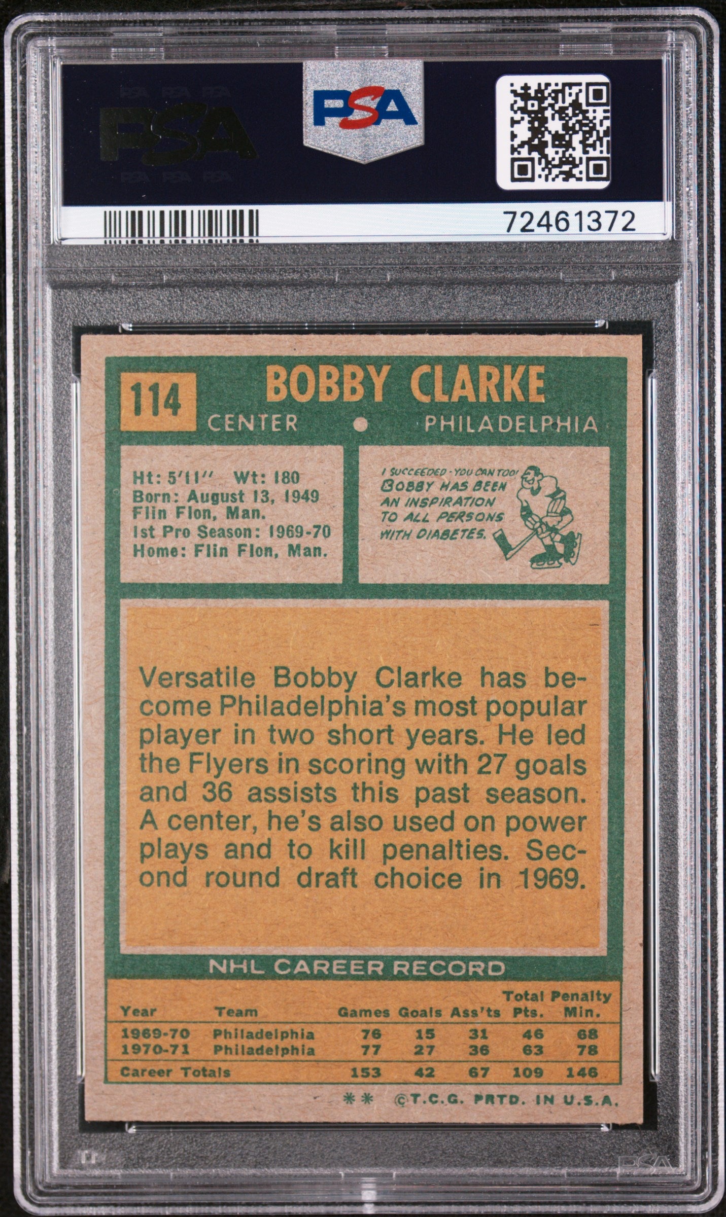 You are purchasing a 1971 Topps Bobby Clarke #114 PSA 6. You will receive the exact item in the photographs. Thank you for looking. Listed With Mascot.