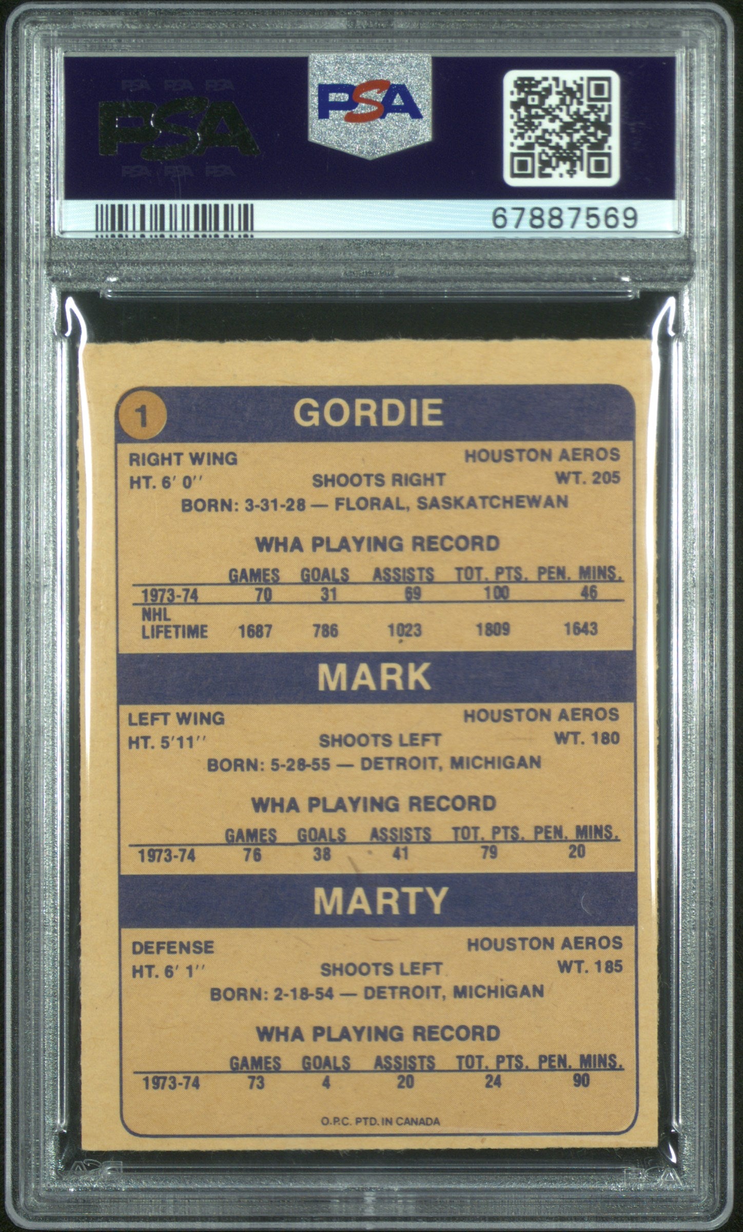 1974 O-Pee-Chee Wha The Howes #1 Gordie Mark Marty PSA 5