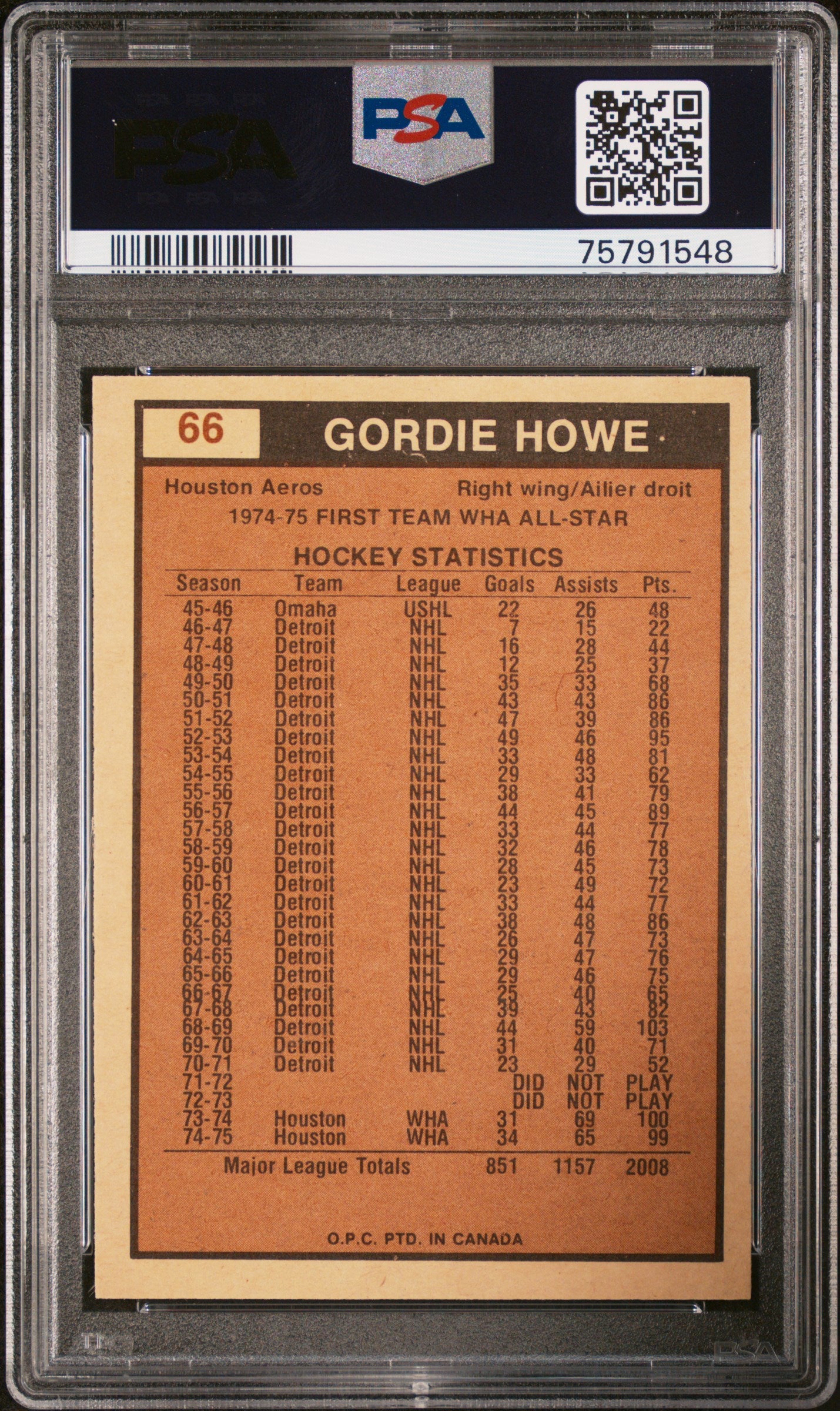 1975 O-Pee-Chee Wha Gordie Howe #66 PSA 6
