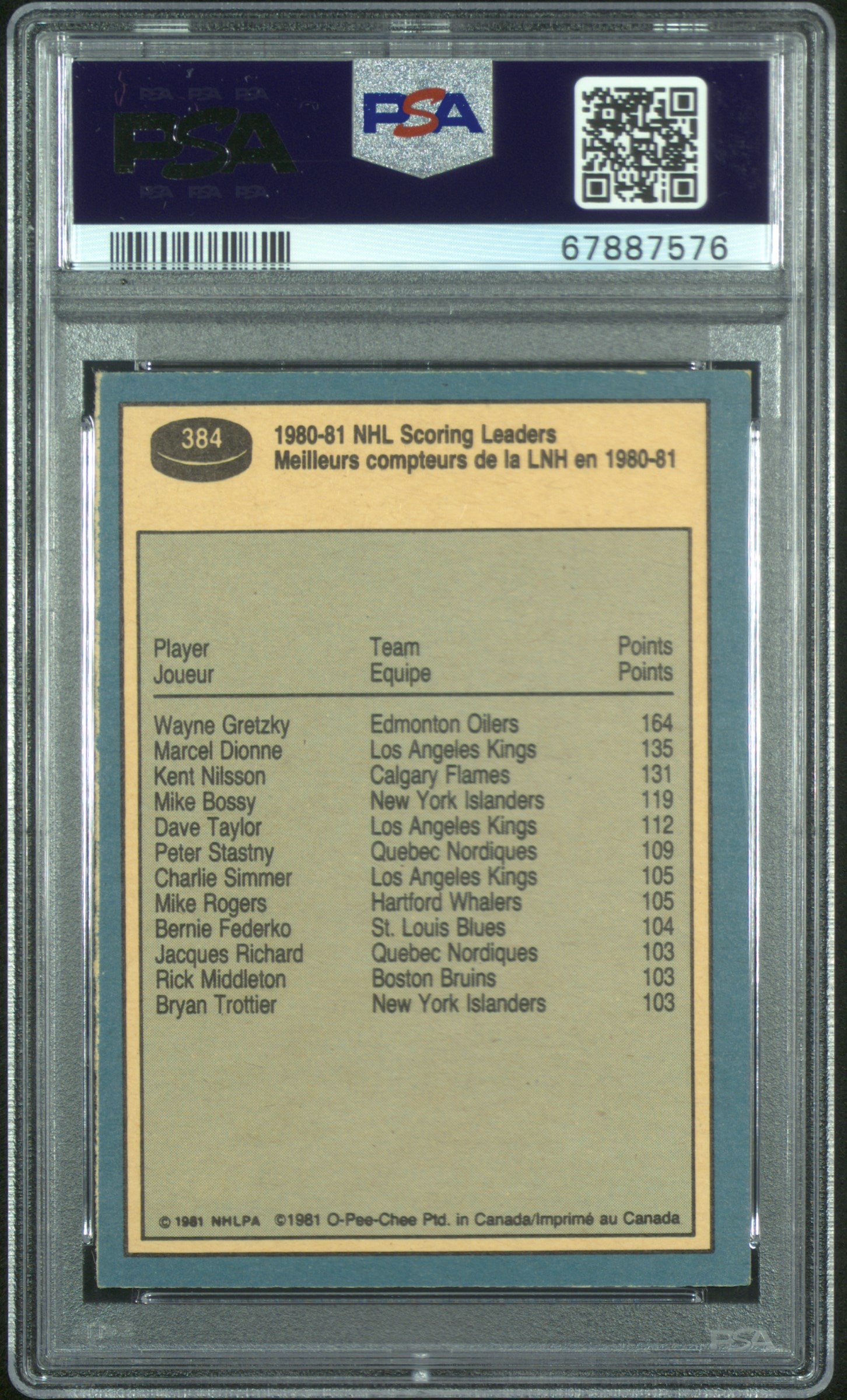 1981 O-Pee-Chee Wayne Gretzky #384 Scoring Leader PSA 6