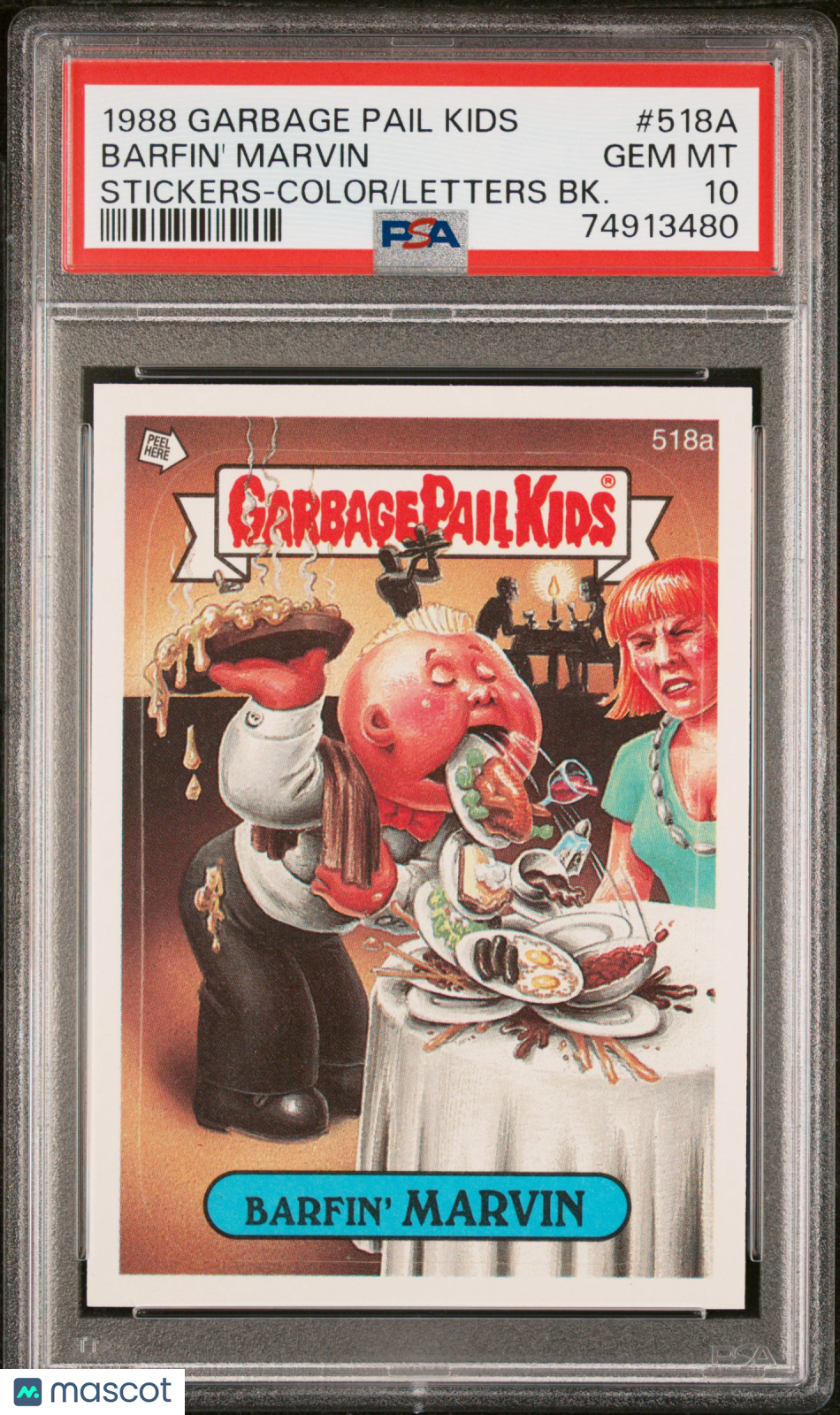 1988 Garbage Pail Kids Stickers Barfin' Marvin #518a PSA 10