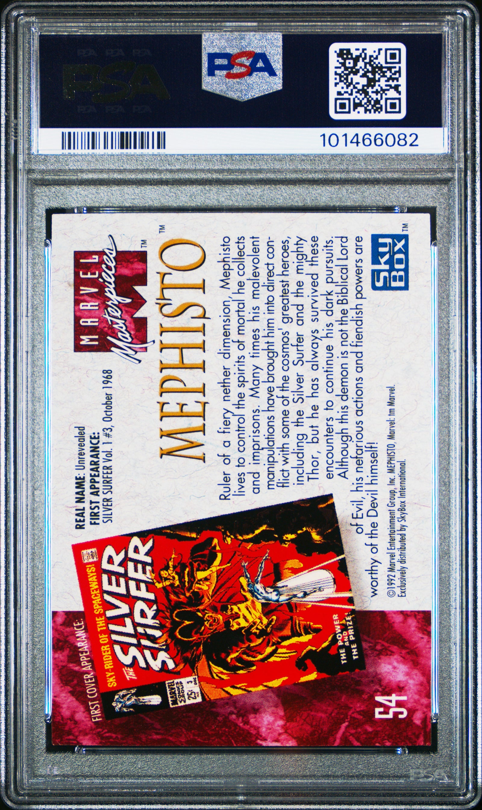 You are purchasing a 1992 Marvel Masterpieces Mephisto #54 PSA 9. You will receive the exact item in the photographs. Thank you for looking. Listed With Mascot.