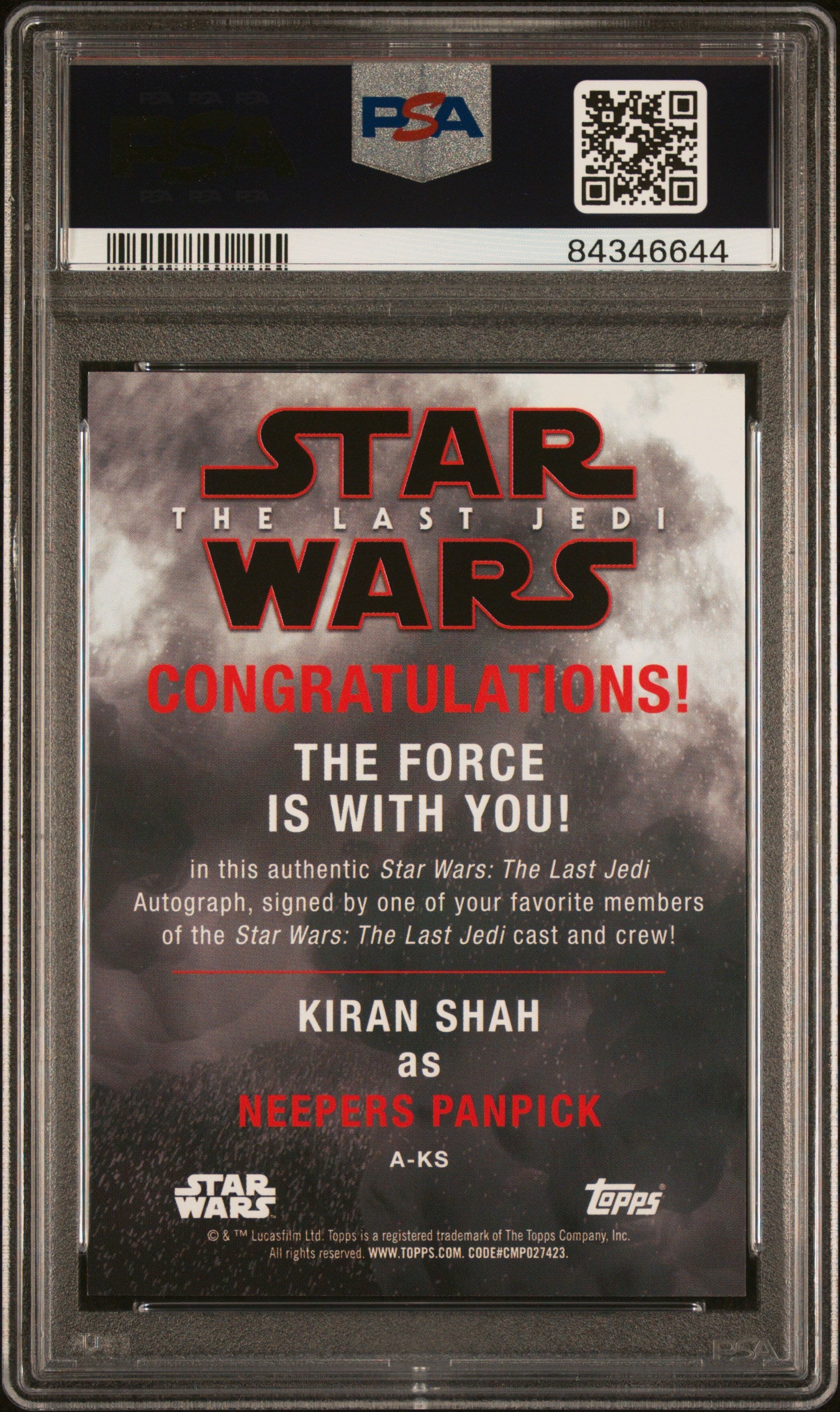 You are purchasing a 2018 Topps Star Wars The Last Jedi Series 2-Autograph Kiran Shah #AKS PSA 10. You will receive the exact item in the photographs. Thank you for looking. Listed With Mascot.