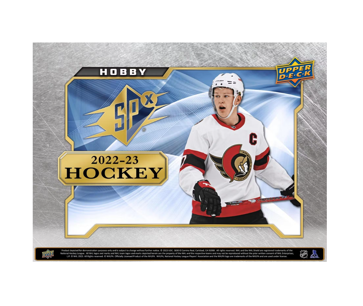 Discover premium NHL collectibles with the 2022-23 Upper Deck SPx Hockey Hobby 20-Box Case! Each box is filled with autographs, memorabilia cards, and stunning inserts, perfect for dedicated hockey card enthusiasts. Free shipping on orders over $200 at The Awesome Card Shop.