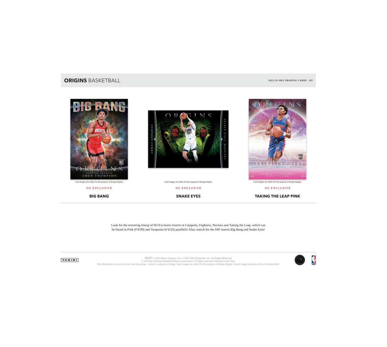 Look for the returning lineup of H2-Exclusive inserts in Catapults, Euphoria, Nucleus, Taking the Leap and SSPs Big Bang and Snake Eyes!