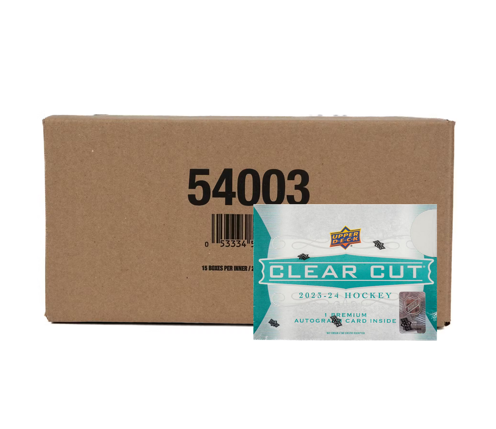 Own the ice with the 2023-24 Upper Deck Clear Cut Hockey Hobby 30-Box Case, featuring premium acetate cards, autographs, and top NHL stars. A must-have for hockey collectors! Free shipping on orders over $200!