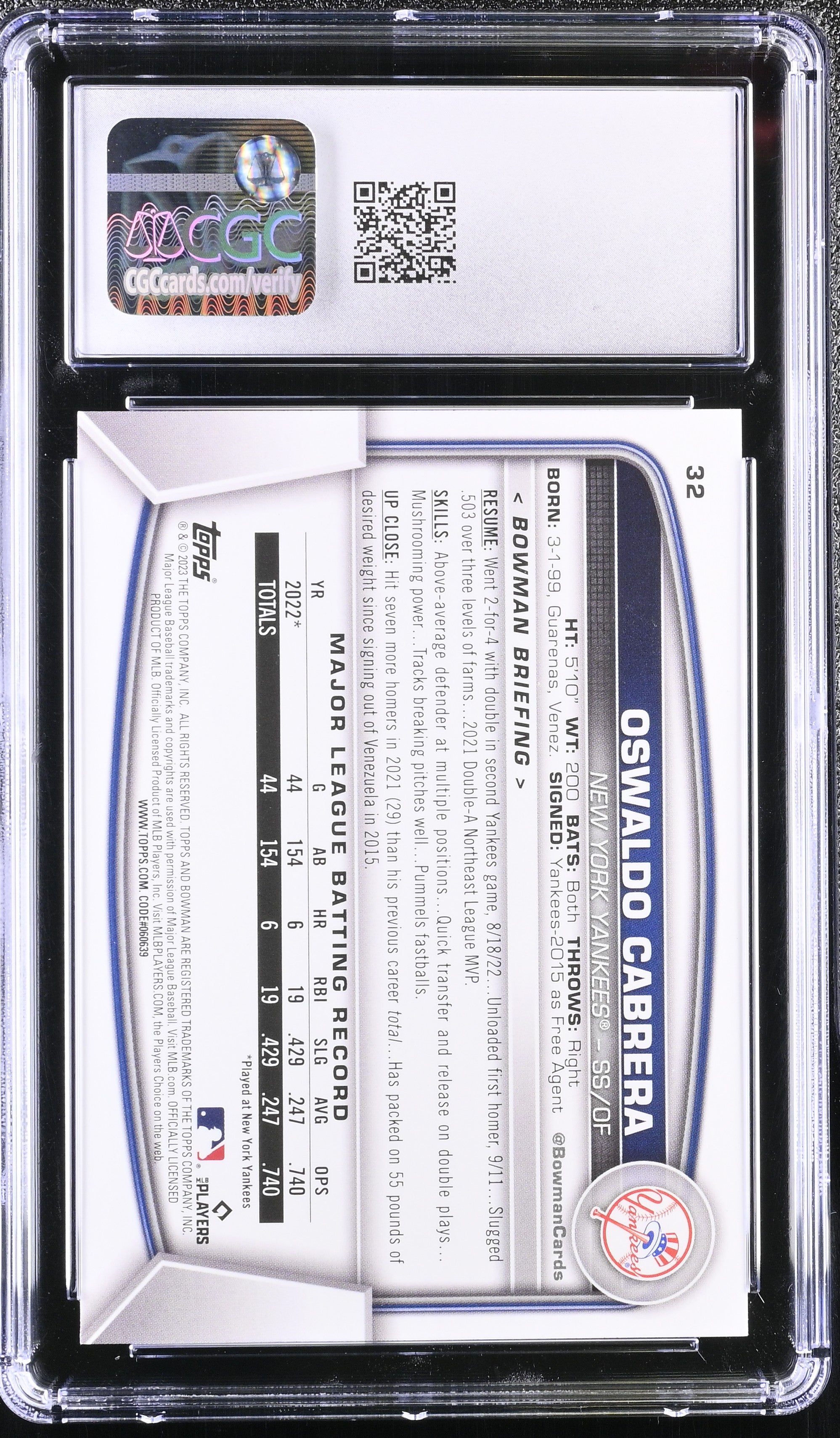 2023 Bowman Oswaldo Cabrera #32 CGC 10