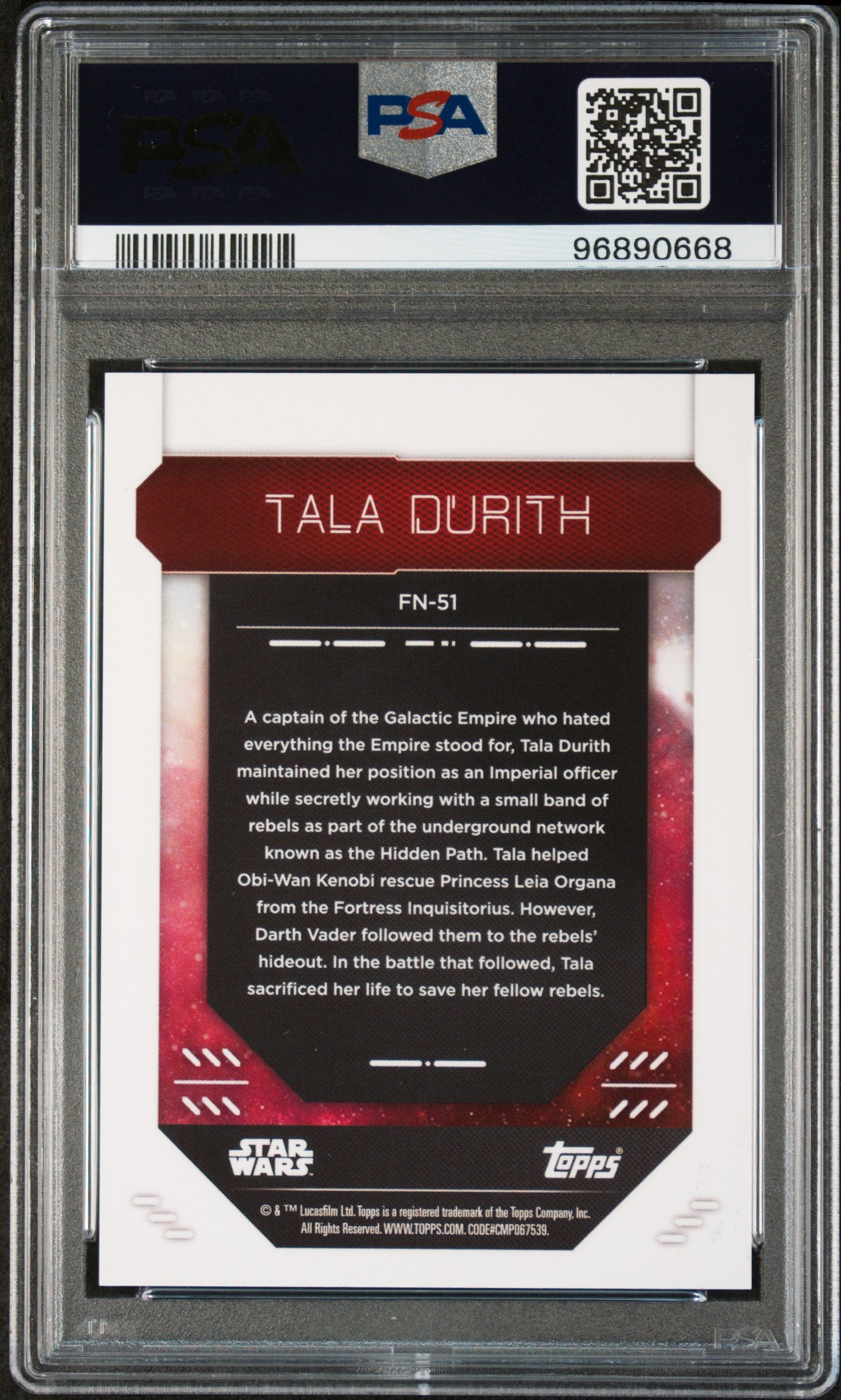 You are purchasing a 2023 Topps Finest Star Wars Tala Durith #FN51 PSA 9. You will receive the exact item in the photographs. Thank you for looking. Listed With Mascot.