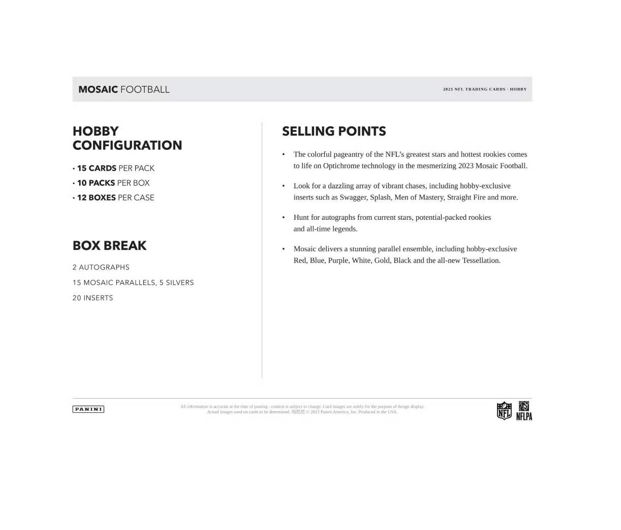 The colorful pageantry of the NFL's greatest stars and hottest rookies comes to life on Optichrome technology in mesmerizing 2023 Mosaic Football.