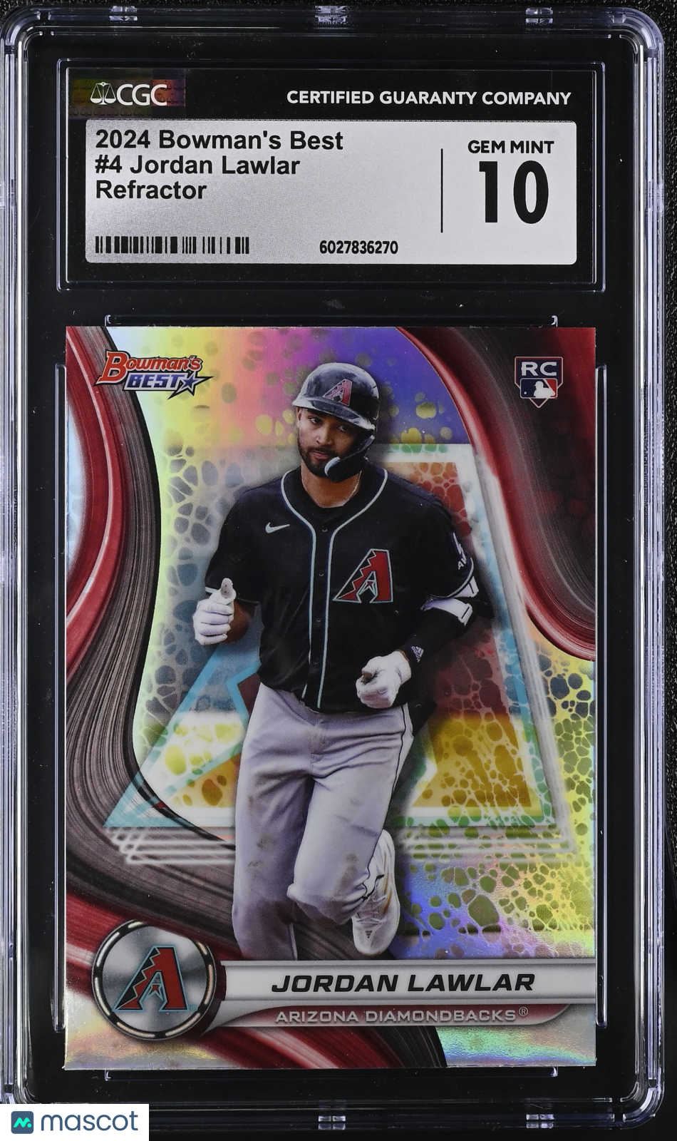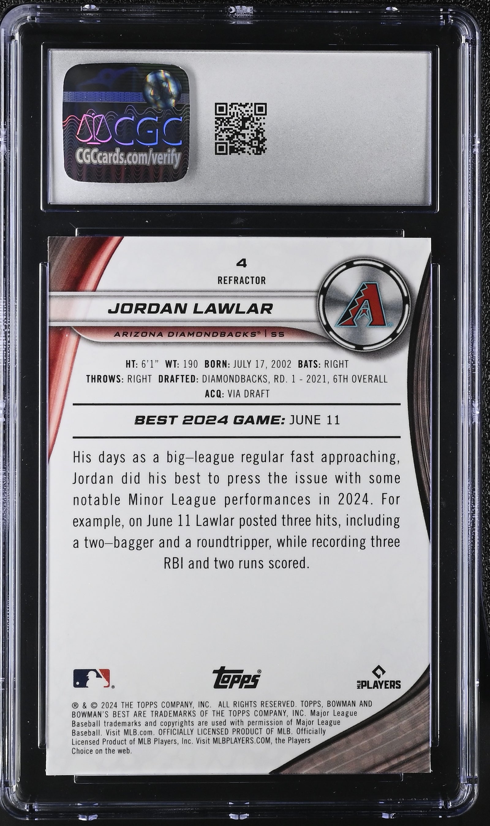 You are purchasing a 2024 Best Jordan Lawlar #4 CGC 10. You will receive the exact card in the photographs. Thank you for looking. Listed With Mascot.