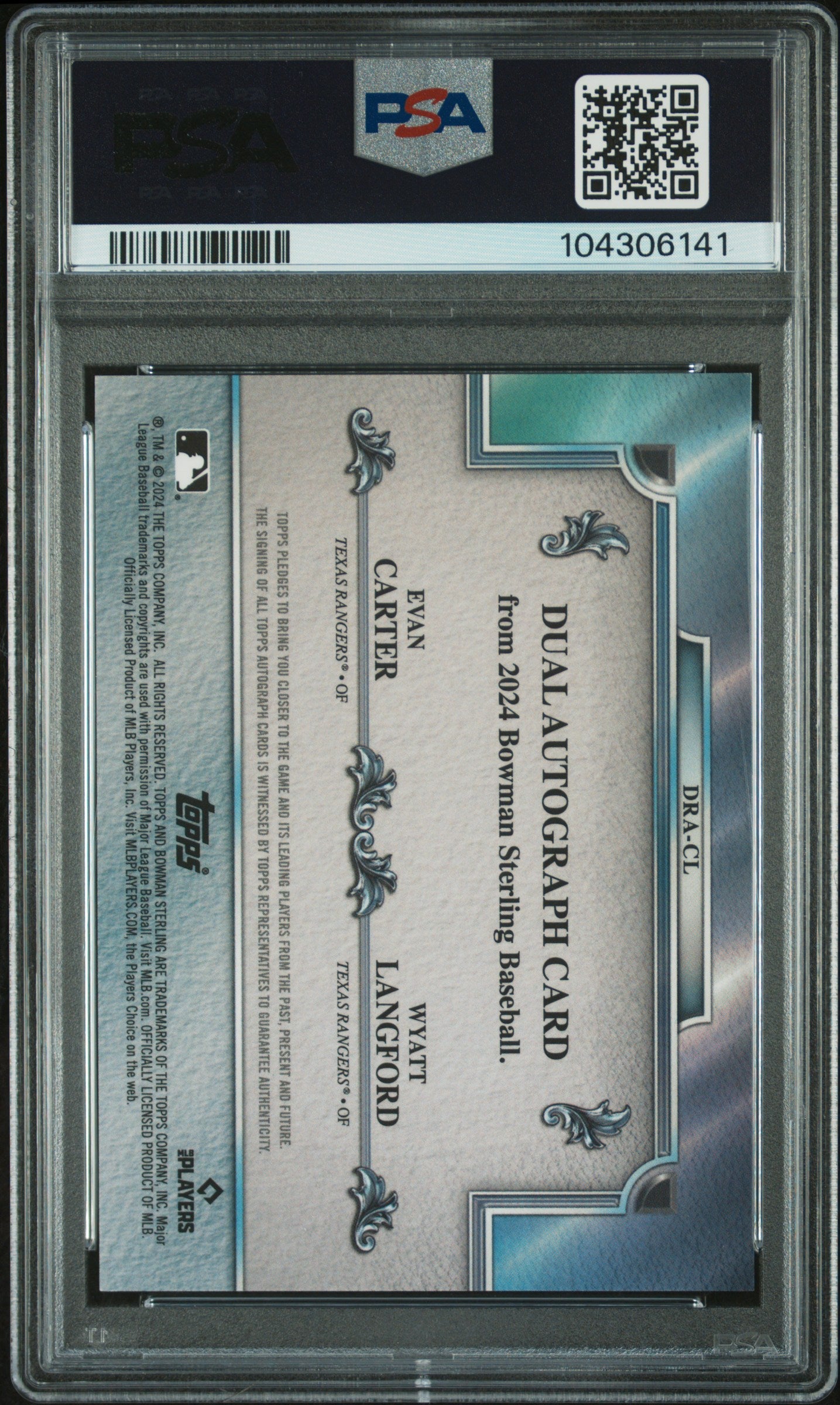 You are purchasing a 2024 Bowman Sterling Dual Refractor Autographs Carter Langford #DRACL 3 / 5 PSA 9. You will receive the exact card in the photographs. Thank you for looking. Listed With Mascot.