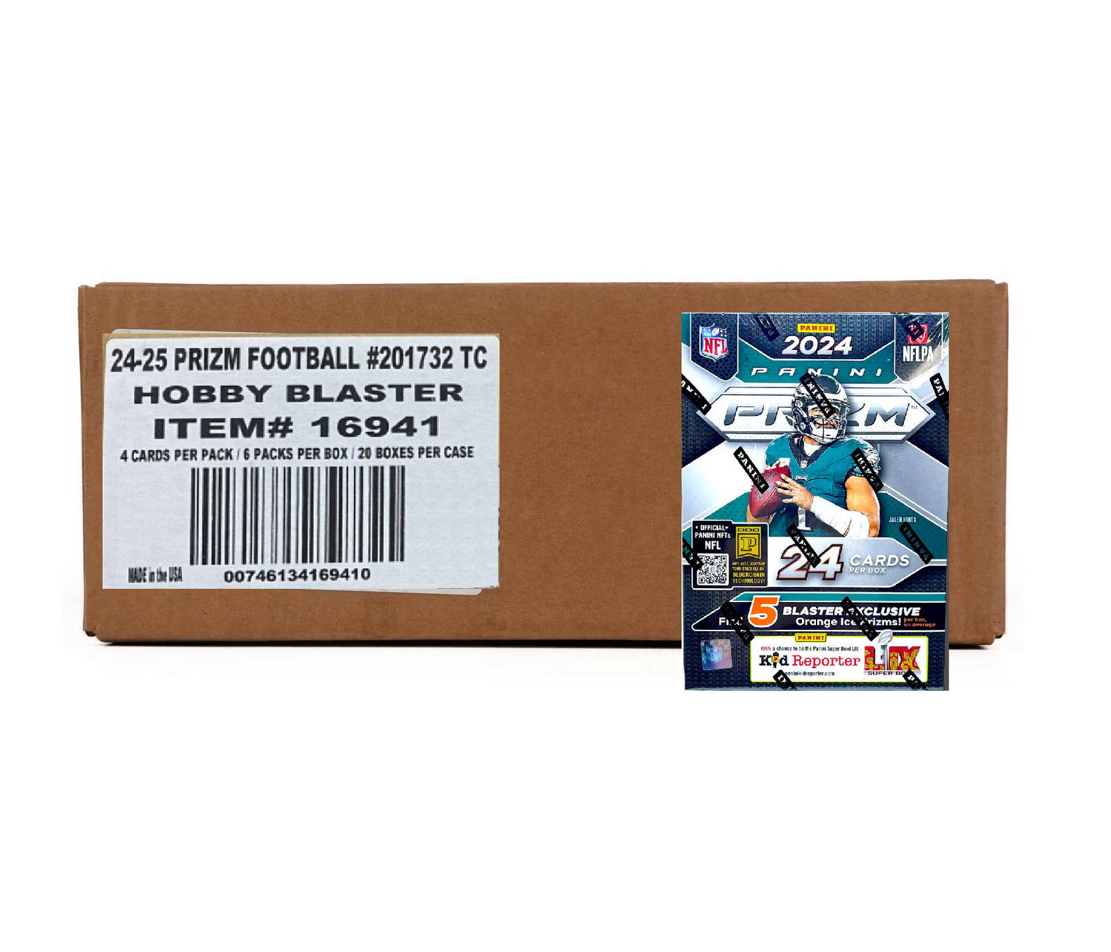 Elevate your football collection with the 2024 Panini Prizm Football Hobby Blaster Box, featuring dazzling Orange Ice parallels, rookie cards, and top NFL stars. A must-have for football collectors! Free shipping on orders over $200!