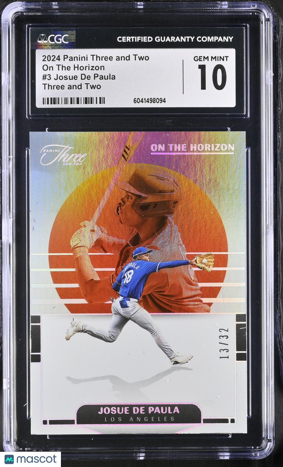You are purchasing a 2024 Panini Three and Two Josue De Paula #3 Three and Two On The Horizon CGC 10. You will receive the exact item in the photographs. Thank you for looking. Listed With Mascot.