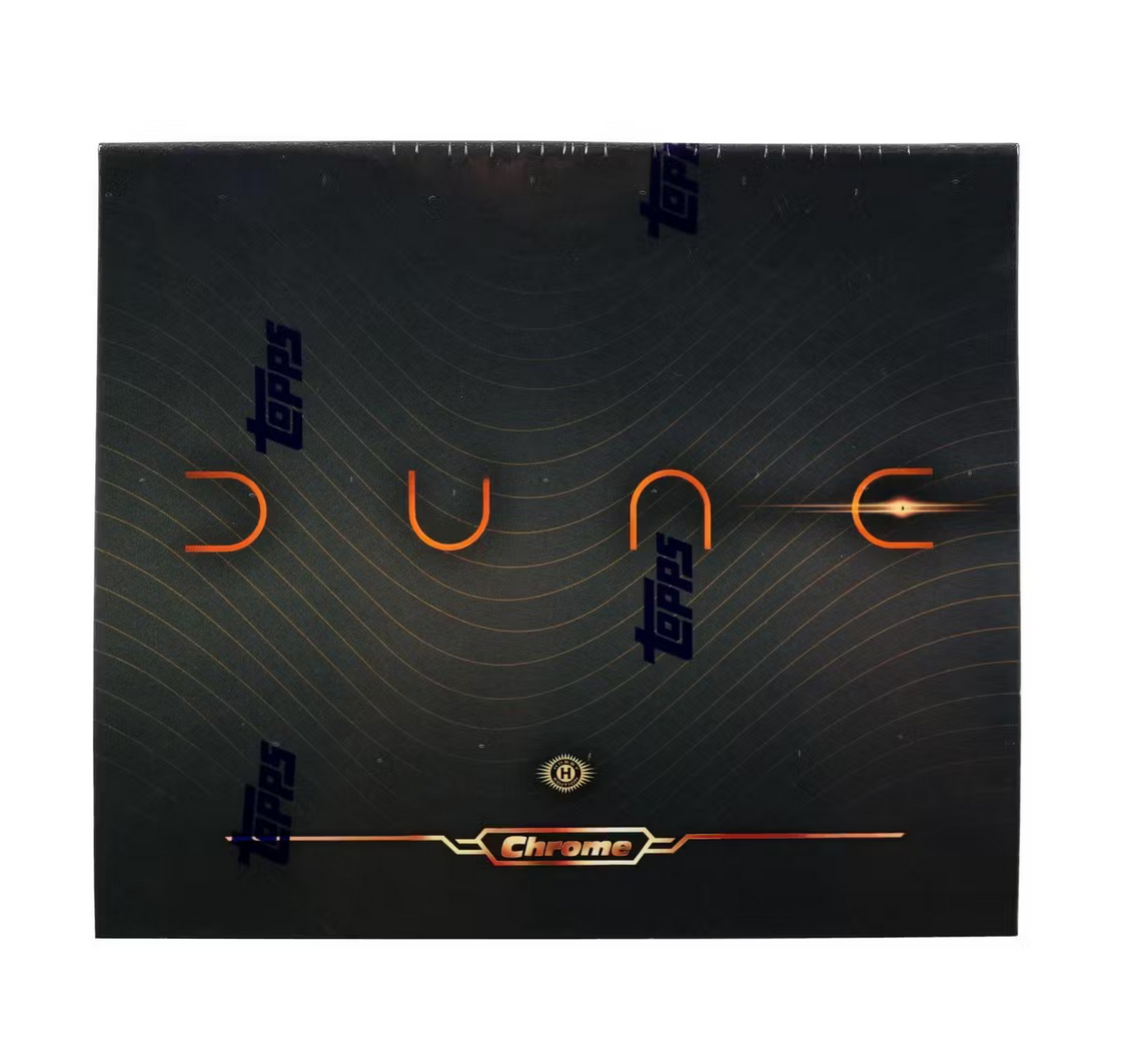 The spice must flow, and so must the cards! Each 2024 Topps Dune Part Two Chrome Hobby Box contains 12 packs loaded with stunning chrome cards. Every box guarantees one sought-after autograph or memorabilia card from the film's cast. Collect iconic characters and chase rare parallels.