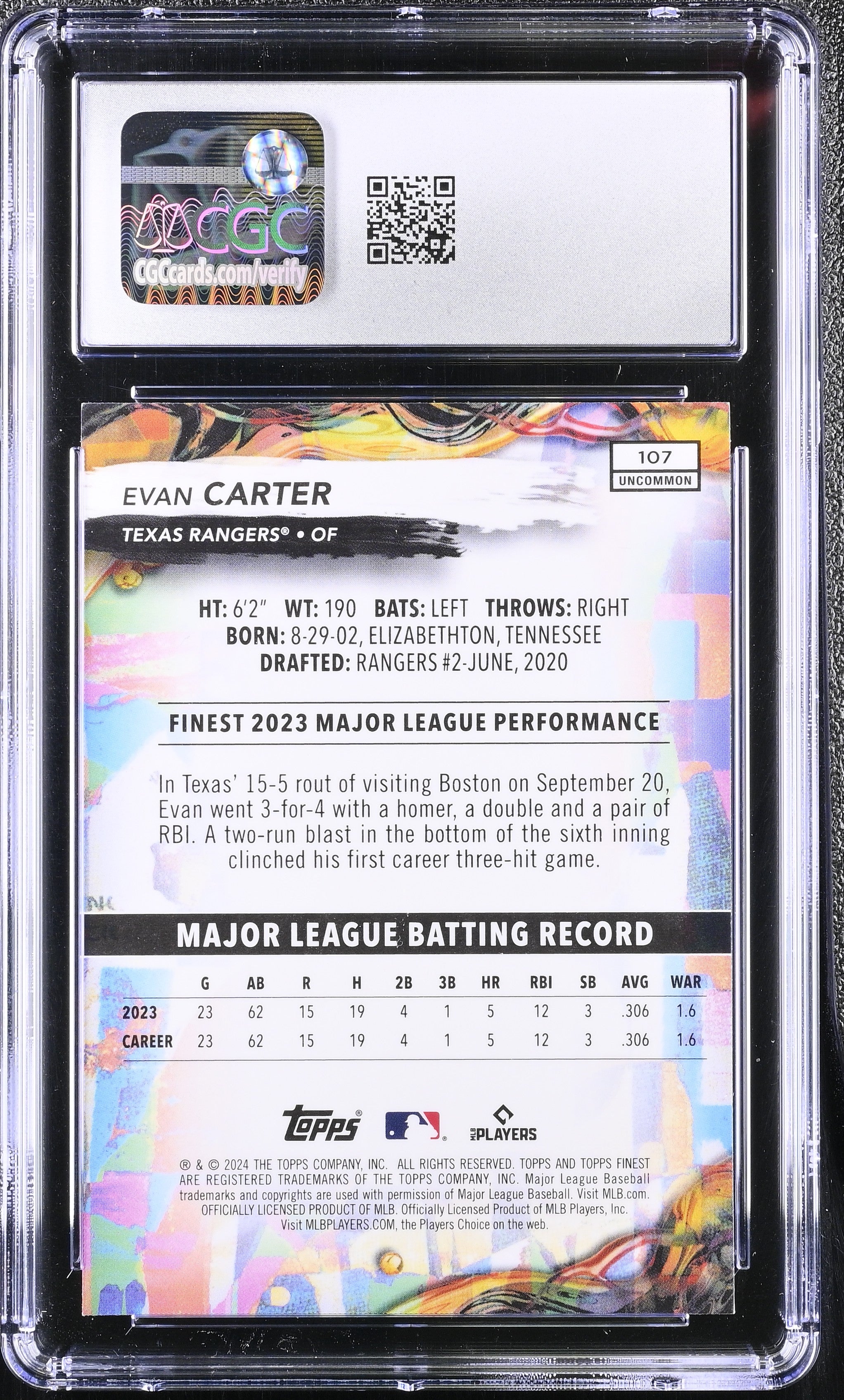 You are purchasing a 2024 Topps Finest Evan Carter #107 CGC 10. You will receive the exact card in the photographs. Thank you for looking. Listed With Mascot.