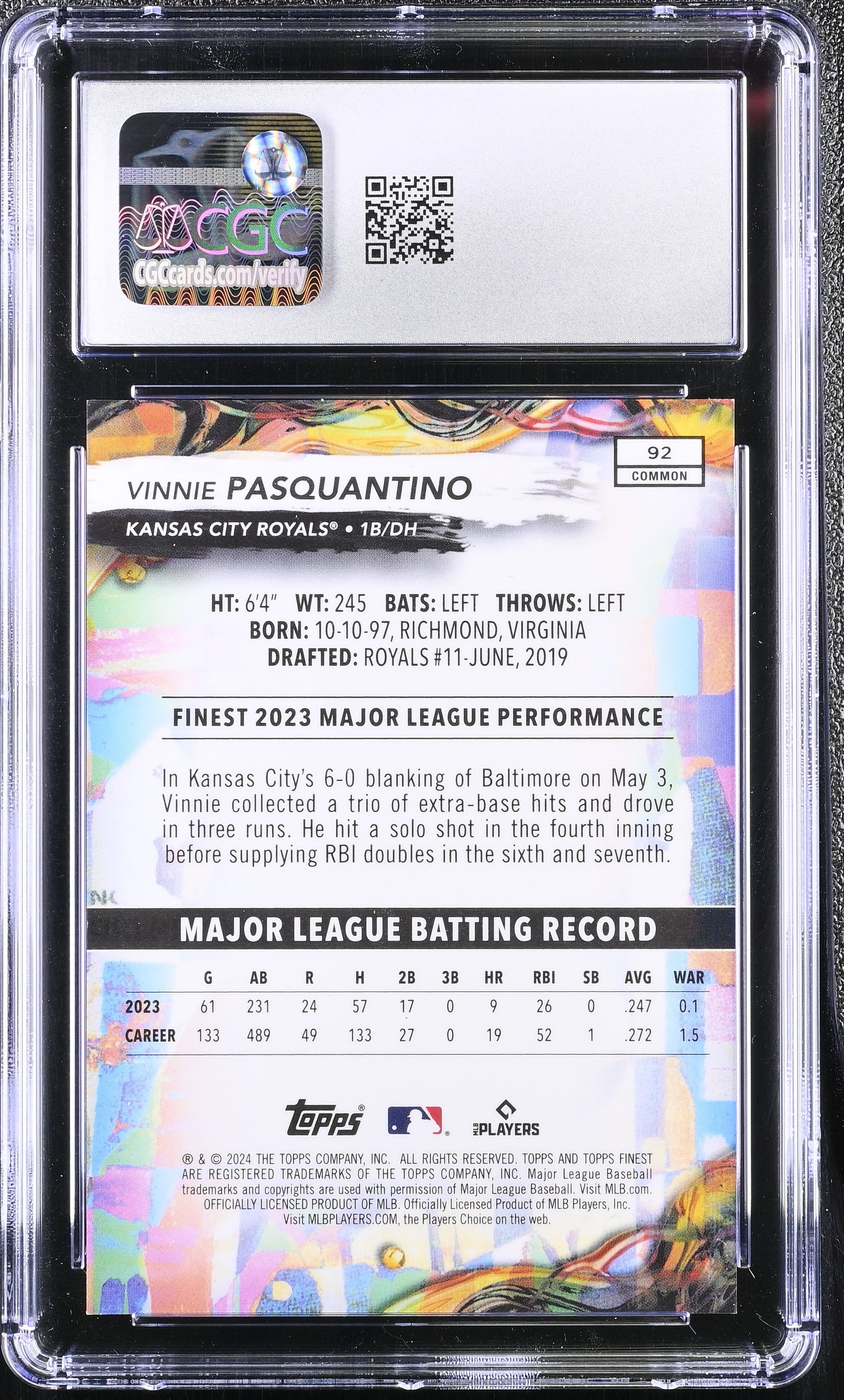 2024 Topps Finest Vinnie Pasquantino #92 CGC 10