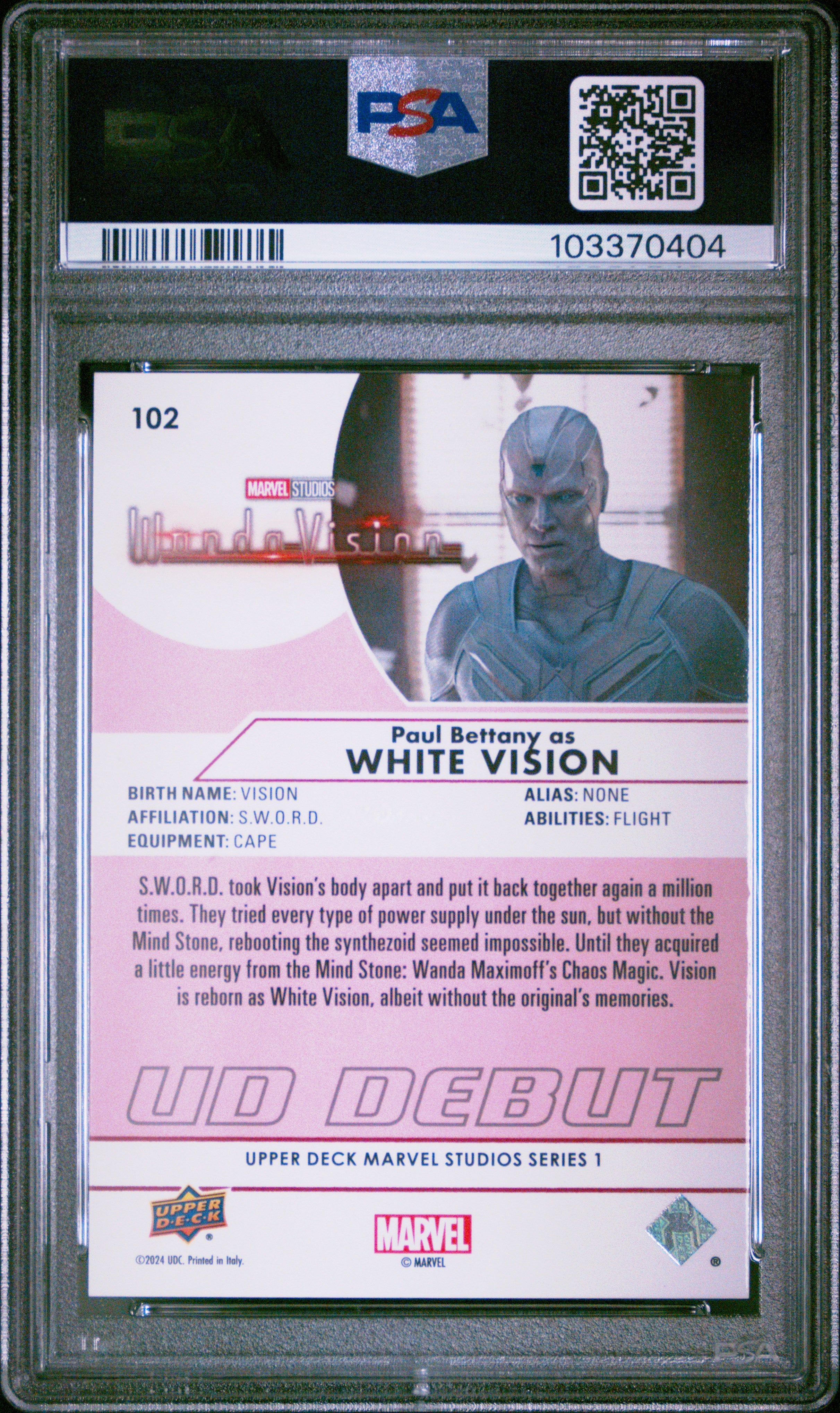 2024 Upper Deck Marvel Studios Series 1 White Vision Bettany #102 PSA 8
