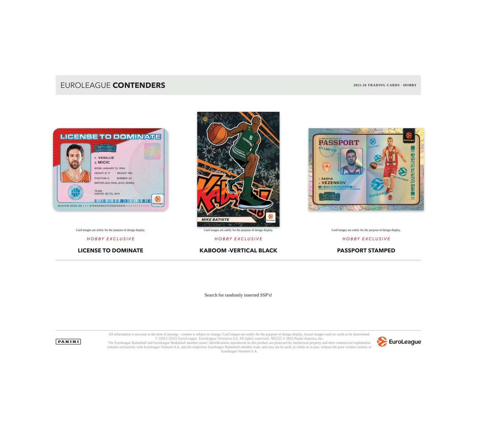 Search for randomly inserted SSP inserts, such as License to Dominate, Passport Stamped, and Kaboom!