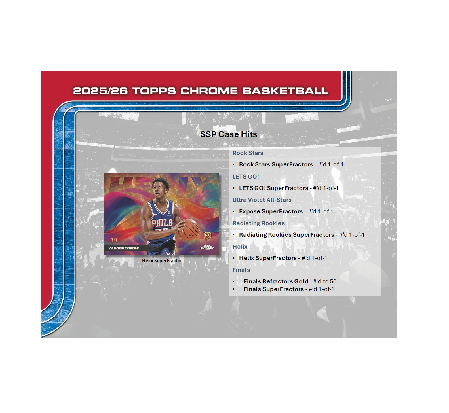 •  Collectors can also hunt for ultra-rare SSP case hits and inserts such as Ultra Violet, Helix, Glass Canvas, Advisory, Paradox, and Patented!