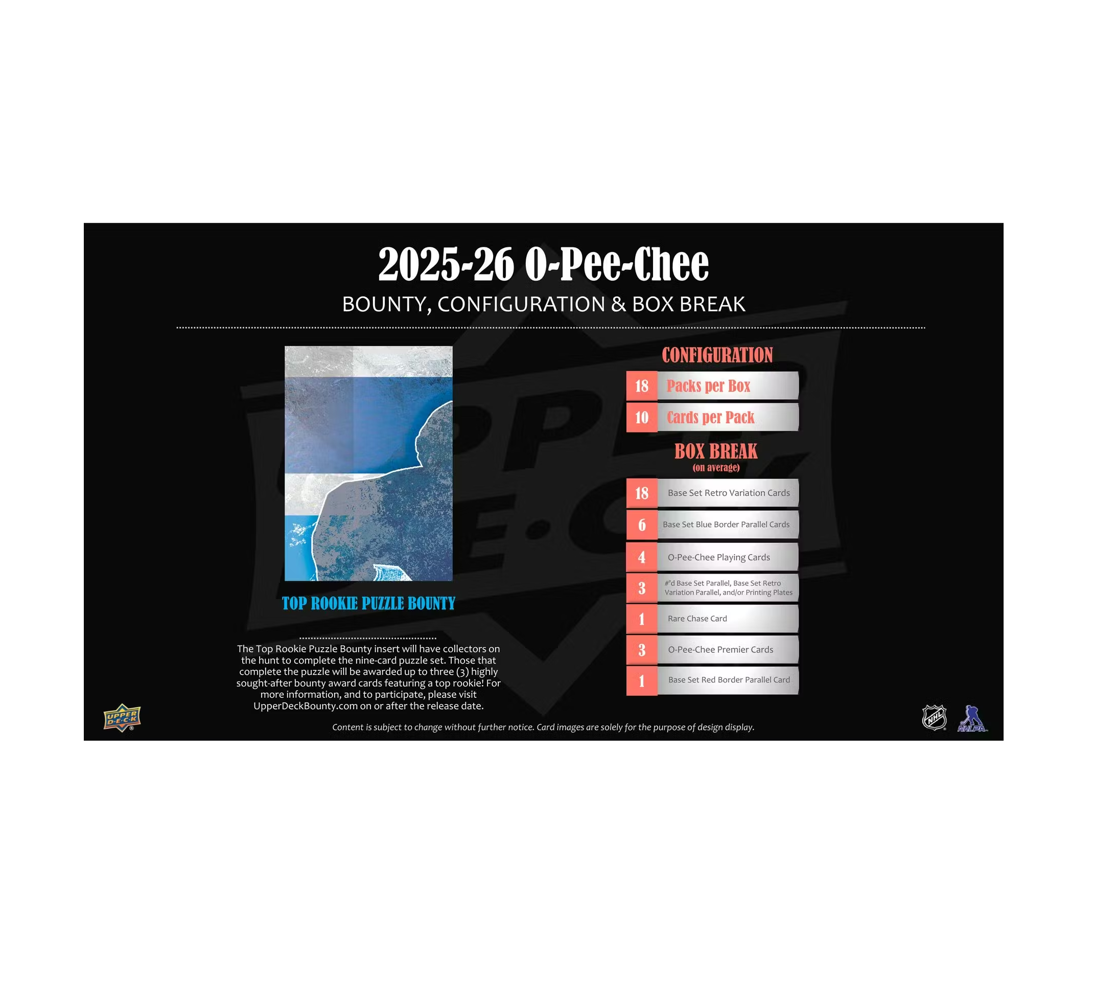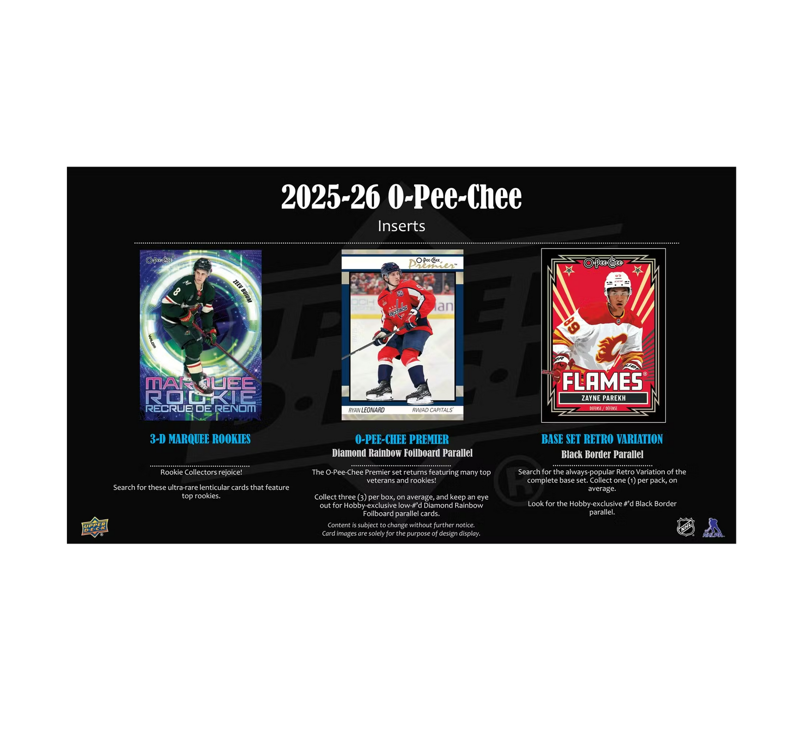 Uncover the 600-card 2025-26 O-Pee-Chee Hockey Base Set! Each Hobby Box averages 3 numbered parallels, 4 Hobby-Exclusive Playing Cards, and 18 Retro Variations. Chase rare hits like Purple Border /49, Retro Black Border /100, and 1/1 Printing Plates. Free shipping on orders over $200.