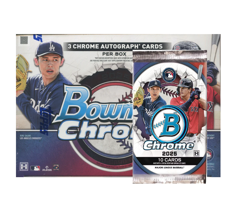 The hunt for the next baseball icon starts here! Get your 2025 Bowman Chrome Baseball Hobby Box, the home of the 1st Bowman card. Each box contains 2 autographed cards from the game's future stars. Chase top prospects, colorful refractor parallels, and all-new inserts. Free shipping on orders over $200.