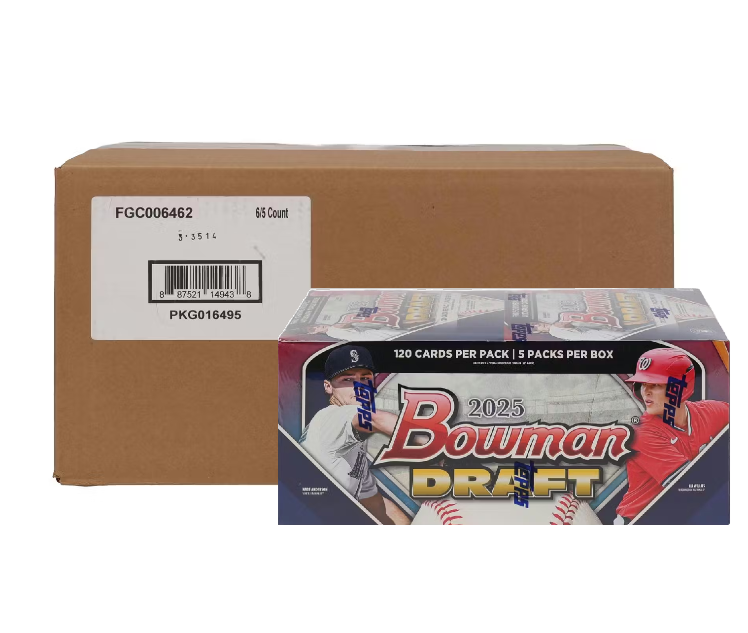 Maximize your hits with the 2025 Bowman Draft Baseball Super Jumbo Hobby 6-Box Case! Delivering 30 guaranteed Chrome autographs total (5 per box), plus massive volume of 1st Bowman prospects, Crystallized inserts, Prized Prospects, Axis, Dream Draft Picks, and rare Duals. Ultimate prospecting power!