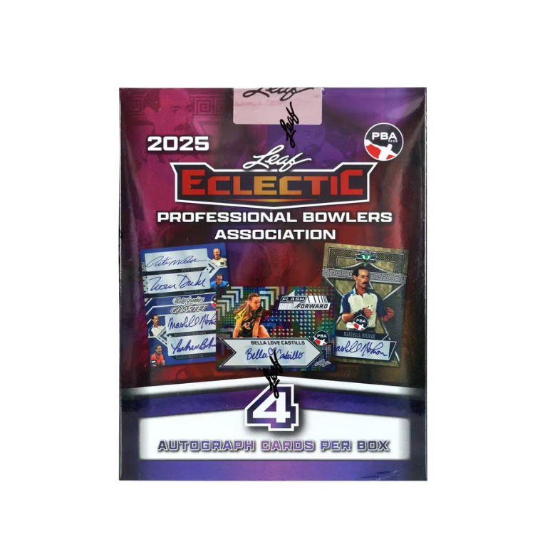 2025 Leaf Eclectic PBA Hobby 12-Box Case delivers 12 boxes, each featuring four autographs—numbered to 10 or fewer—from top PBA legends, stars, rookies, and multi-signed dual, triple, and quad combinations. Free shipping on orders over $200.