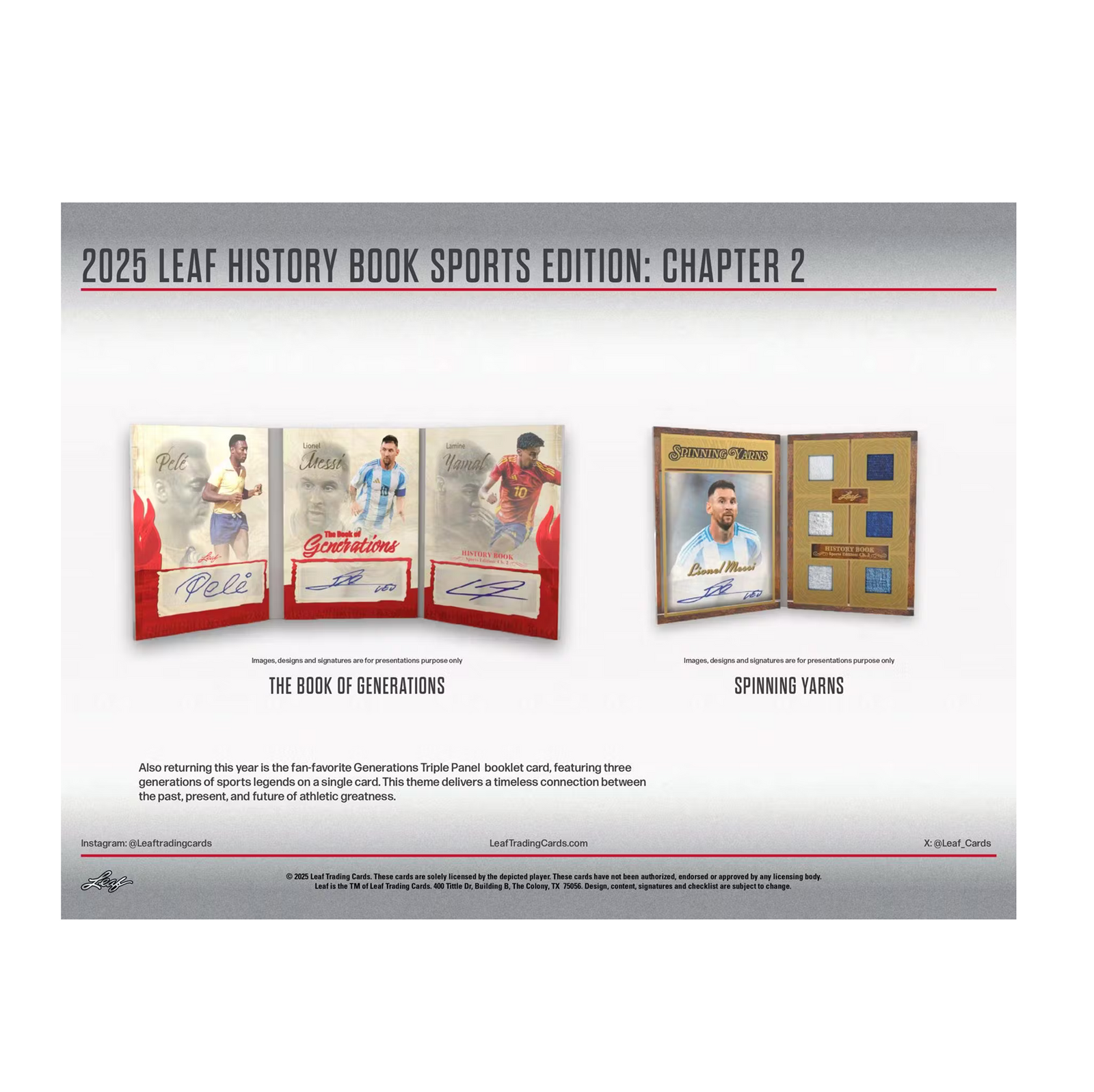 Leaf Trading Cards is excited to announce the return of 2025 Leaf History Book Sports Edition: Chapter 2! Every card in this release is a premium booklet card showcasing iconic legends and standout stars from across the global sports landscape!