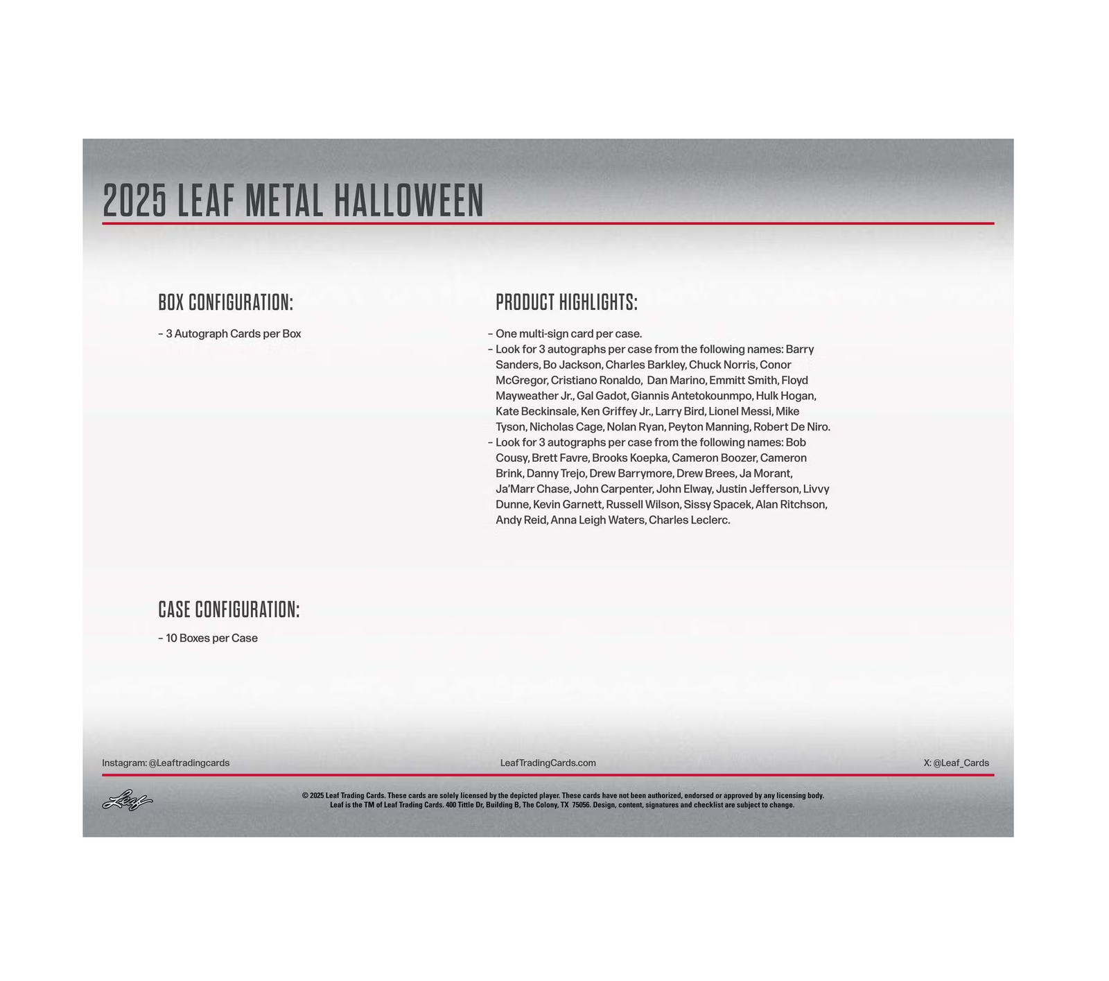 2025 Leaf Metal Halloween Hobby 10-Box Case