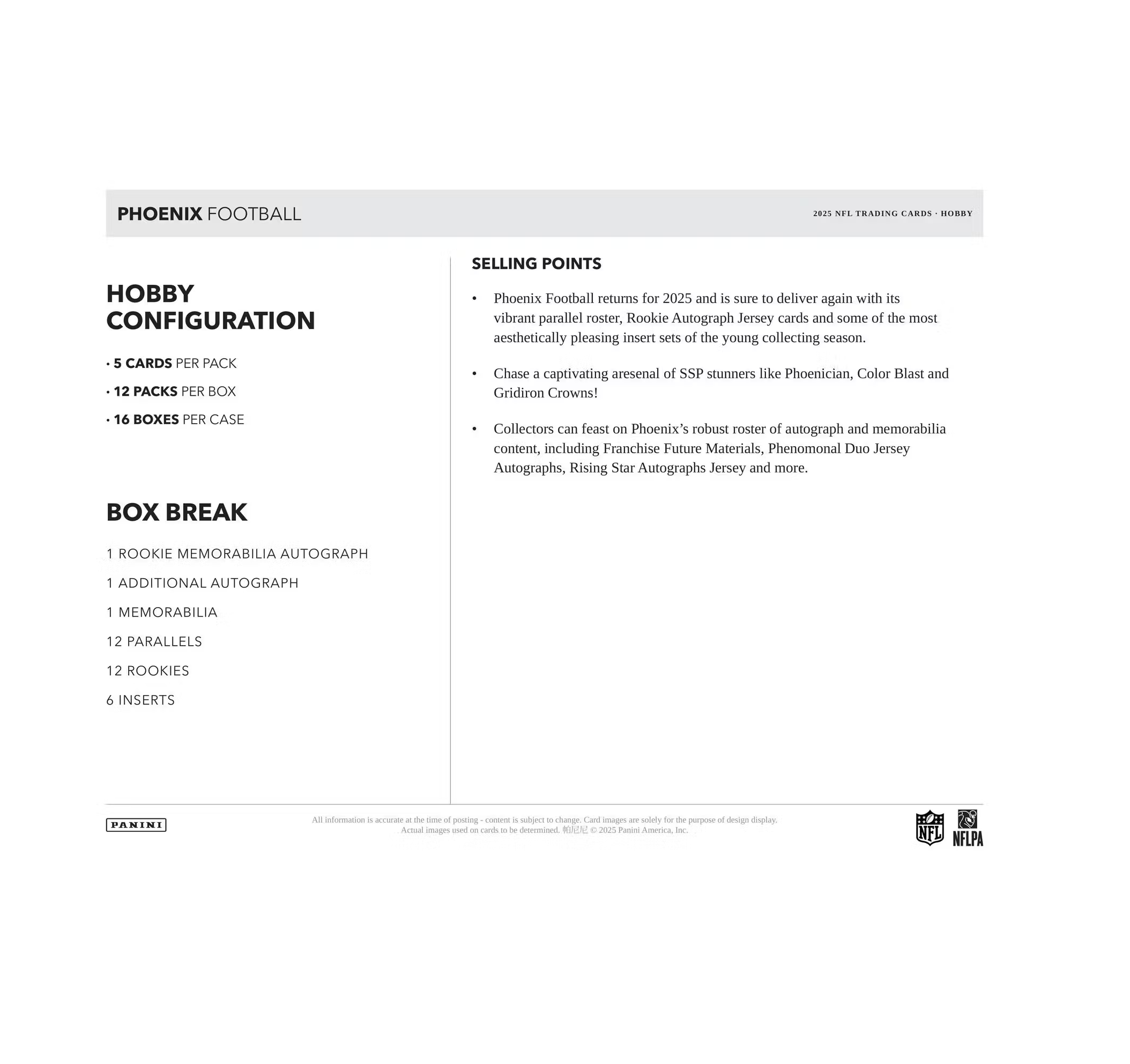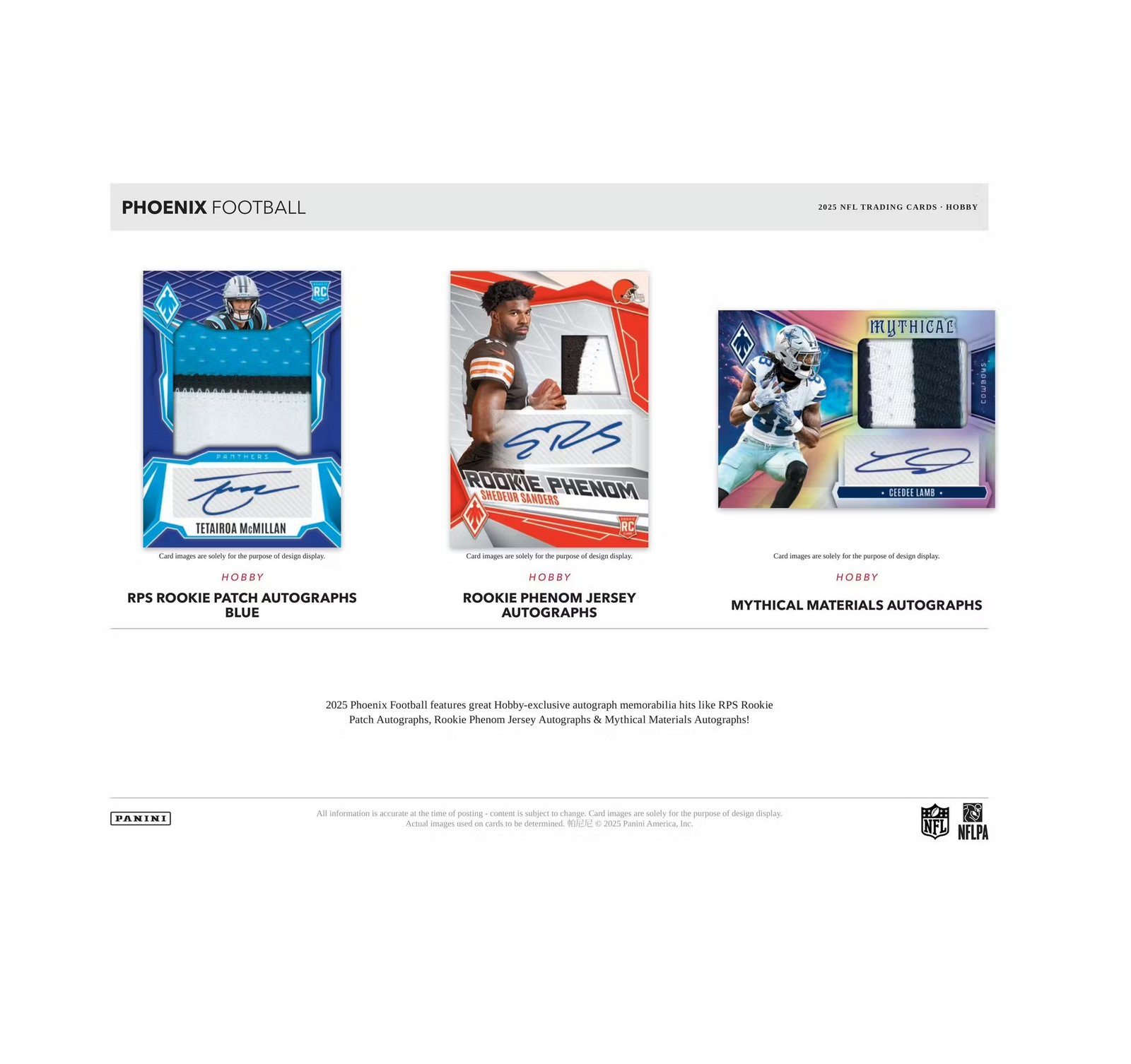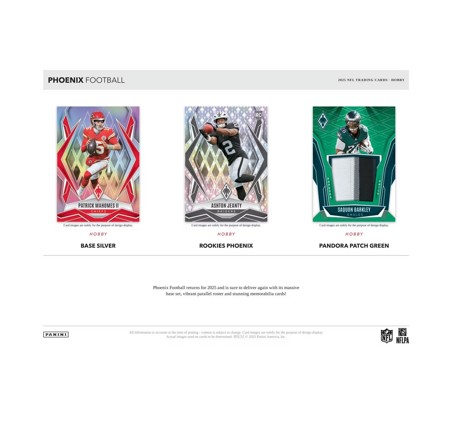 Phoenix Football returns for 2025 and is sure to deliver again with its vibrant parallel roster, Rookie Autograph Jersey cards and some of the most aesthetically pleasing insert sets of the young collecting season!