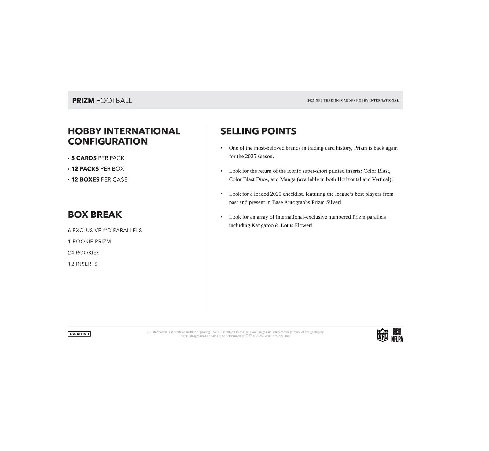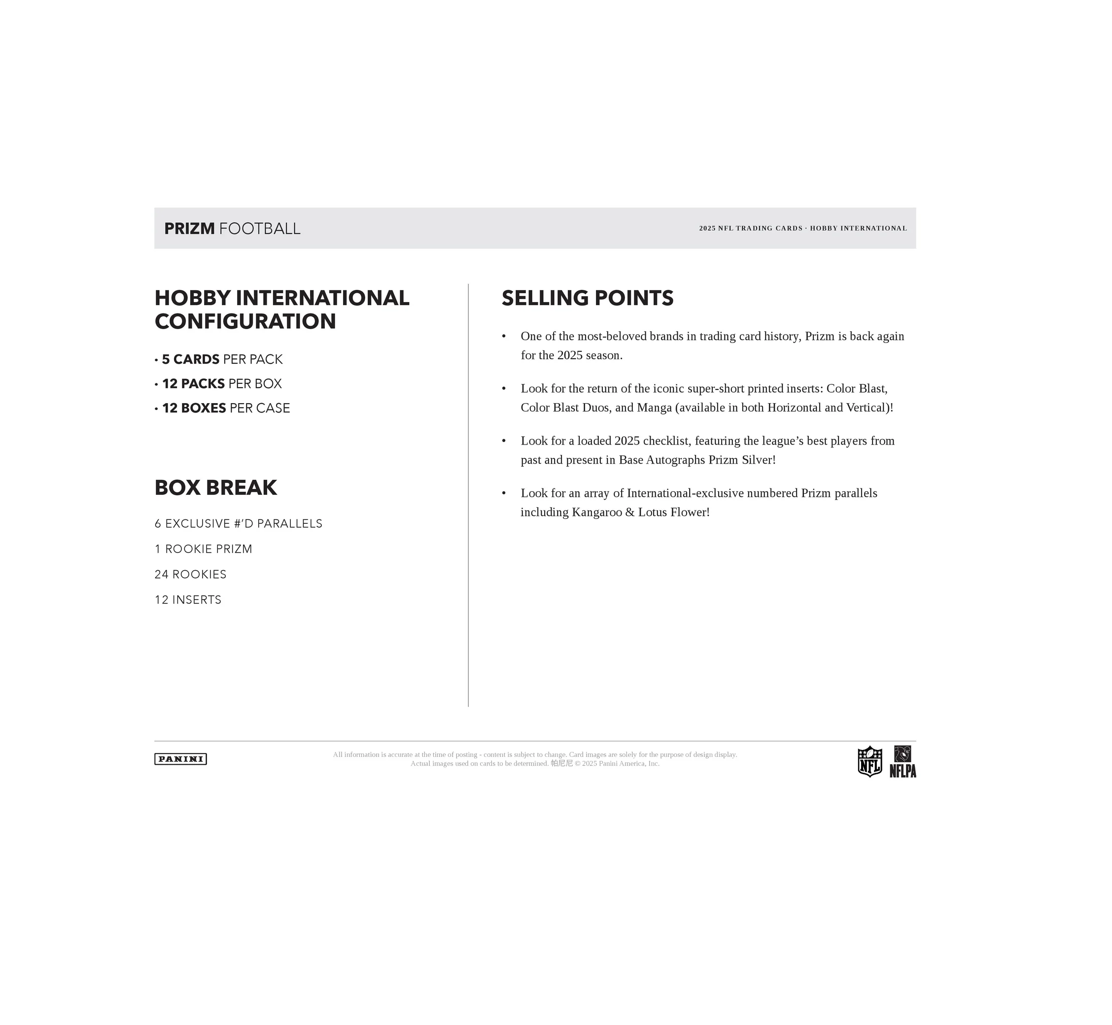 Look for an array of International-exclusive numbered Prizm parallels including Kangaroo & Lotus Flower!