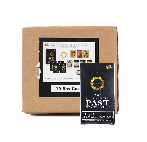 Ahoy, matey! Chase 10 guaranteed premium relic or autograph cards in this 2025 Super Break Pieces of the Past Pirates Edition 10-Box Case. Look for one-of-a-kind relics from famous historical pirates like Blackbeard, Captain Kidd, and Captain Morgan, plus autographed cards from actors who have played pirates. Free ship