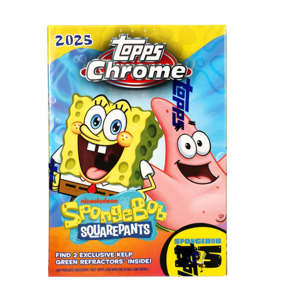 • For the first time since 2009, Topps and Spongebob come back together to celebrate 25 years of everyone’s favorite little square dude with 2025 Topps Chrome Spongebob 25th Anniversary!