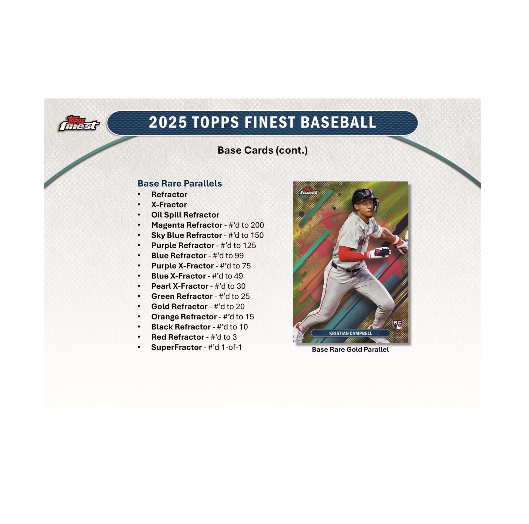 Look for 2 Chrome Autographs, 2 Base Card Refractors, 2 Base Cards Rare, 5 Base Card X-Fractors, 5 additional Base Card Parallels, and 10 insert cards or parallels per box on average.