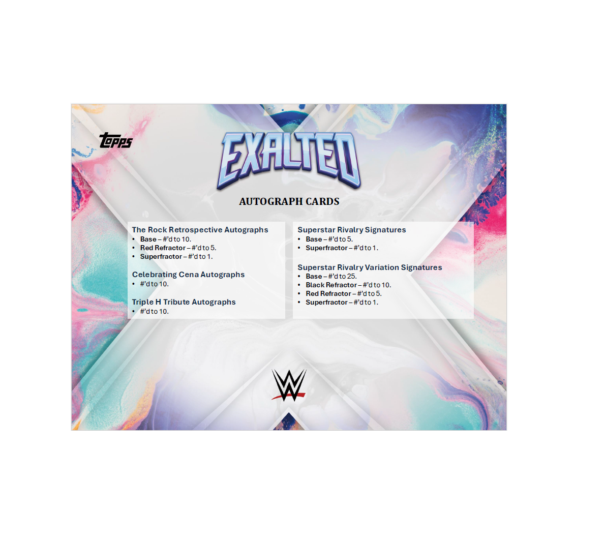 The Time is Now!!! It’s True! It’s True! Topps Exalted WWE is making its debut in this hobby-exclusive release!