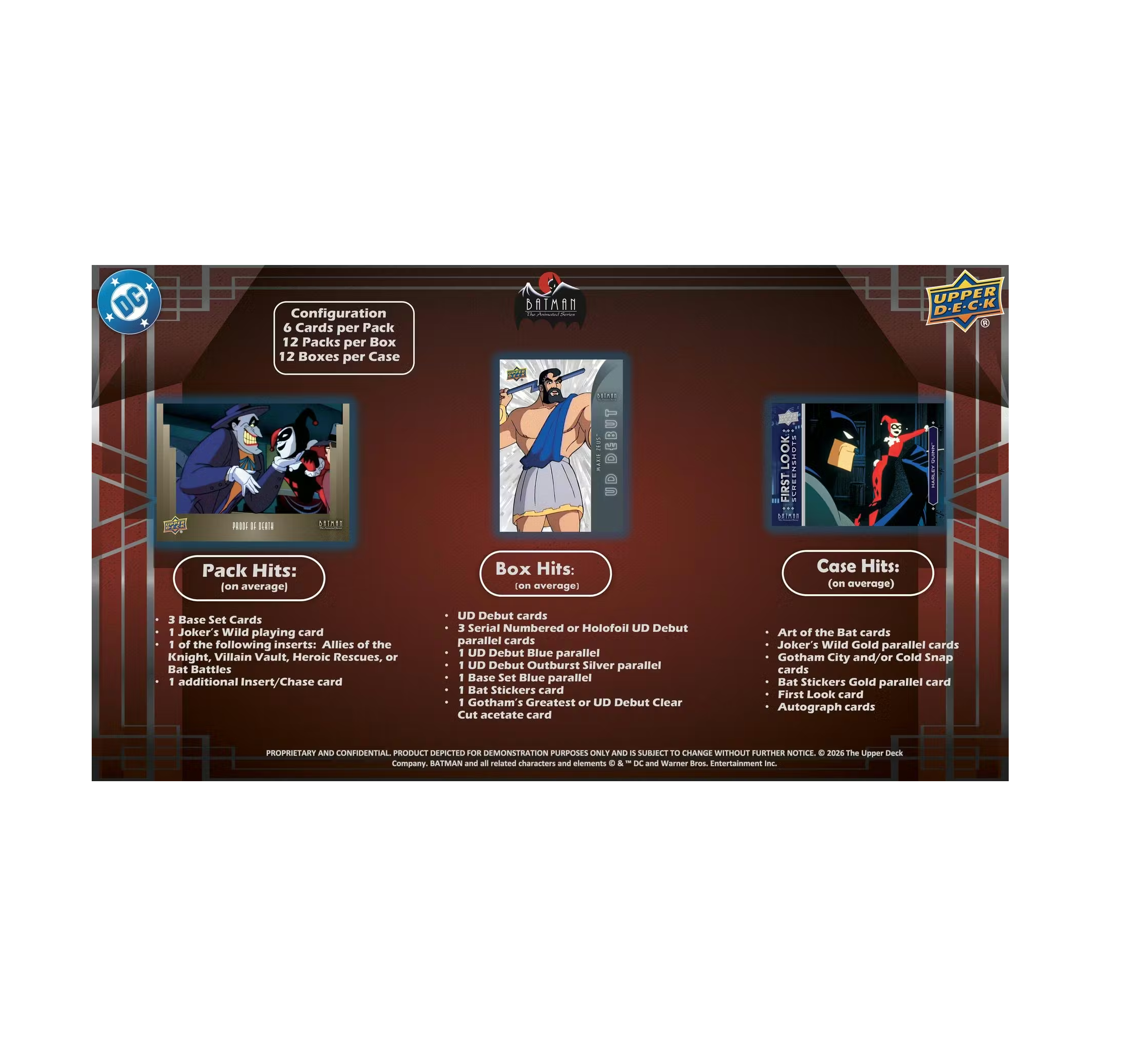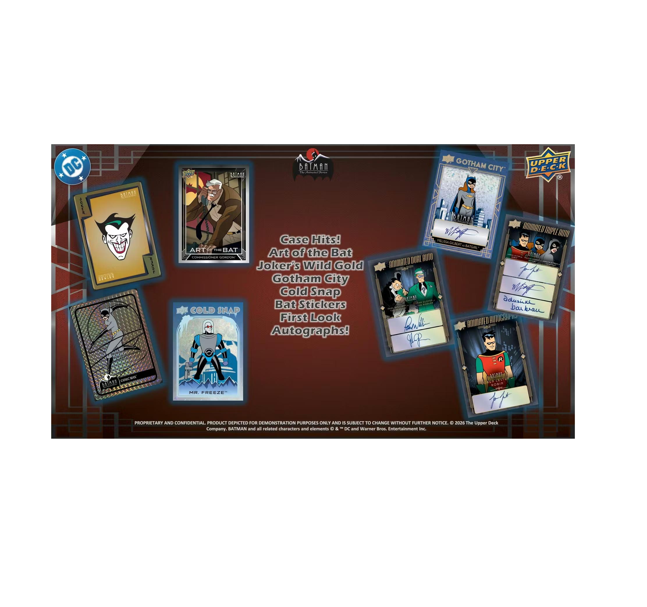 Relive the legend with the 2025 Upper Deck Batman: The Animated Series Hobby Box! Each 12-pack box features rare Outburst parallels, Art of the Bat inserts, and a chance at autographs from the original voice cast. Chase 1-of-1 Gold parallels and the Kevin Conroy Cut Signature. Shop the caped crusader today!