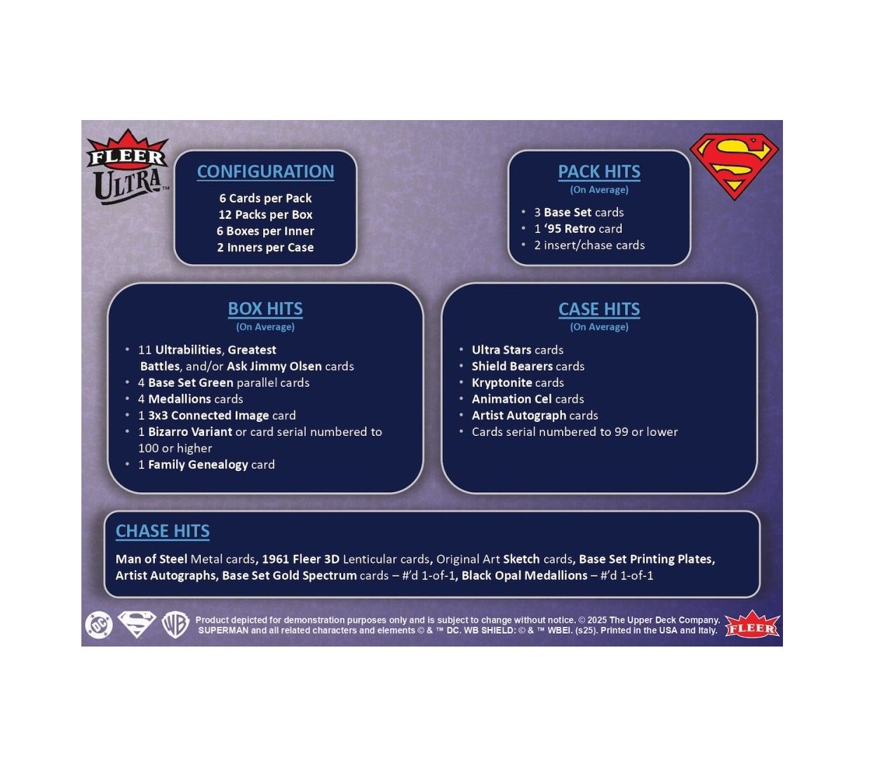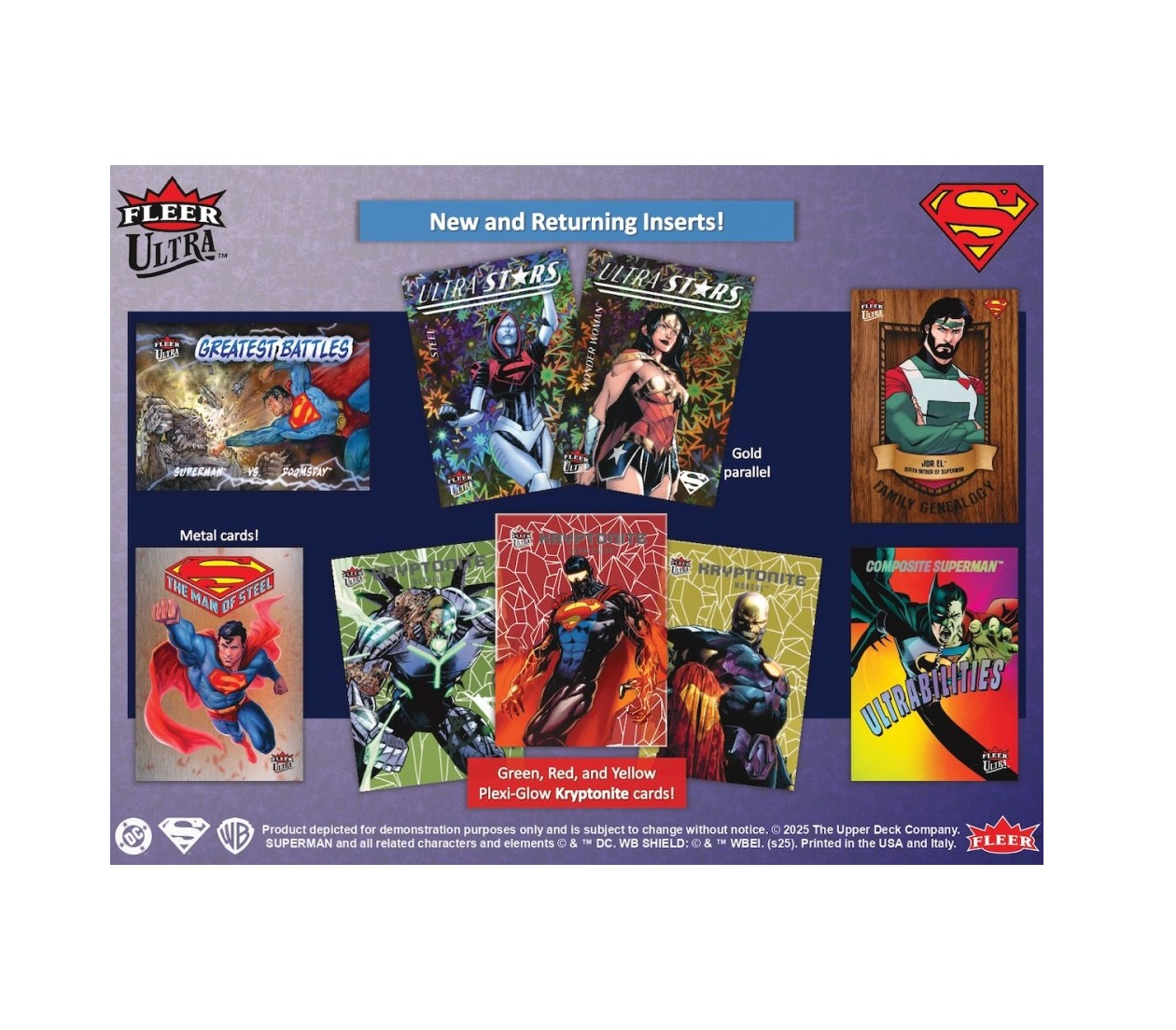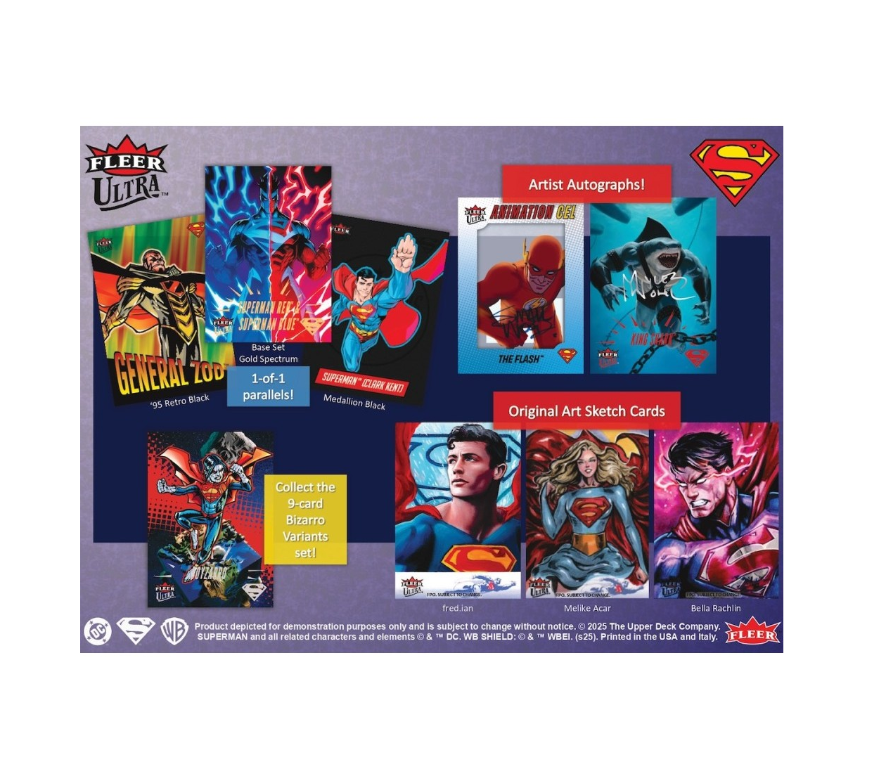 Fleer Ultra Superman is soaring in with all-new original art from top artists! Collect iconic Fleer Ultra designs, serial numbered parallels, iconic chase cards, artist autographs, and brand-new inserts