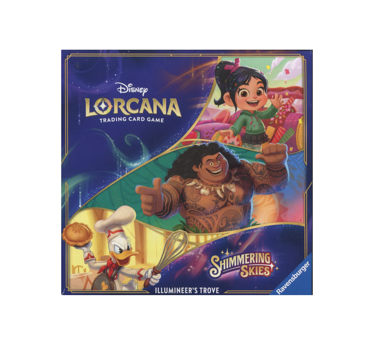 The ultimate treasure for both collectors and players, the Illumineer’s Trove includes a full-art storage box with 6 ink-themed card dividers to keep your Disney Lorcana TCG cards safe and organized.