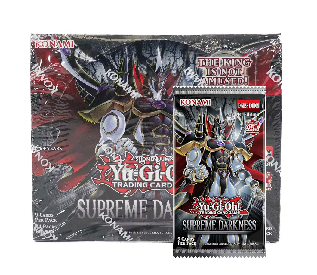 Embrace the shadows with the Yu-Gi-Oh! Supreme Darkness Booster Pack, featuring powerful Dark Attribute monsters, rare cards, and game-changing strategies. A must-have for duelists and collectors. Free shipping on orders over $200!